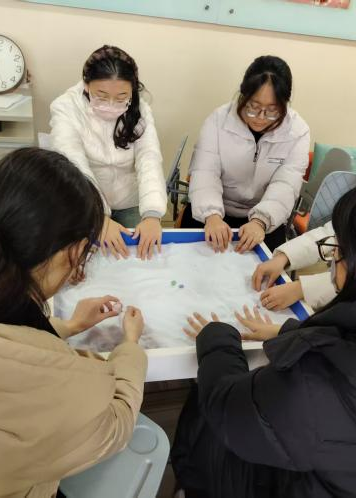 12月18日下午,线下沙盘游戏在章丘校区团体心理活动室顺利举行。活动由经济与管理学院专职心理辅导员张丽娜老师带领,活动伊始,“蒙娜丽莎”破冰游戏迅速调动起现场气氛,同学们在欢声笑语中拉近距离,营造出安全开放的团体氛围。随后,心理教师为大家介绍了心理沙盘的起源、理论基础及在情绪表达与压力调适中的应用,帮助同学们理解“非言语表达”在心理探索中的独特作用。接着,在教师引导下,大家共同浏览、赏析了参与同学此前完成的线上沙盘作品。一幅幅沙盘,无声地述说着创作者近期的情绪、期待与内心世界。在观看与分享中,同学们对彼此多了一份理解,也对沙盘这一“心灵镜像”有了更直观的体会。