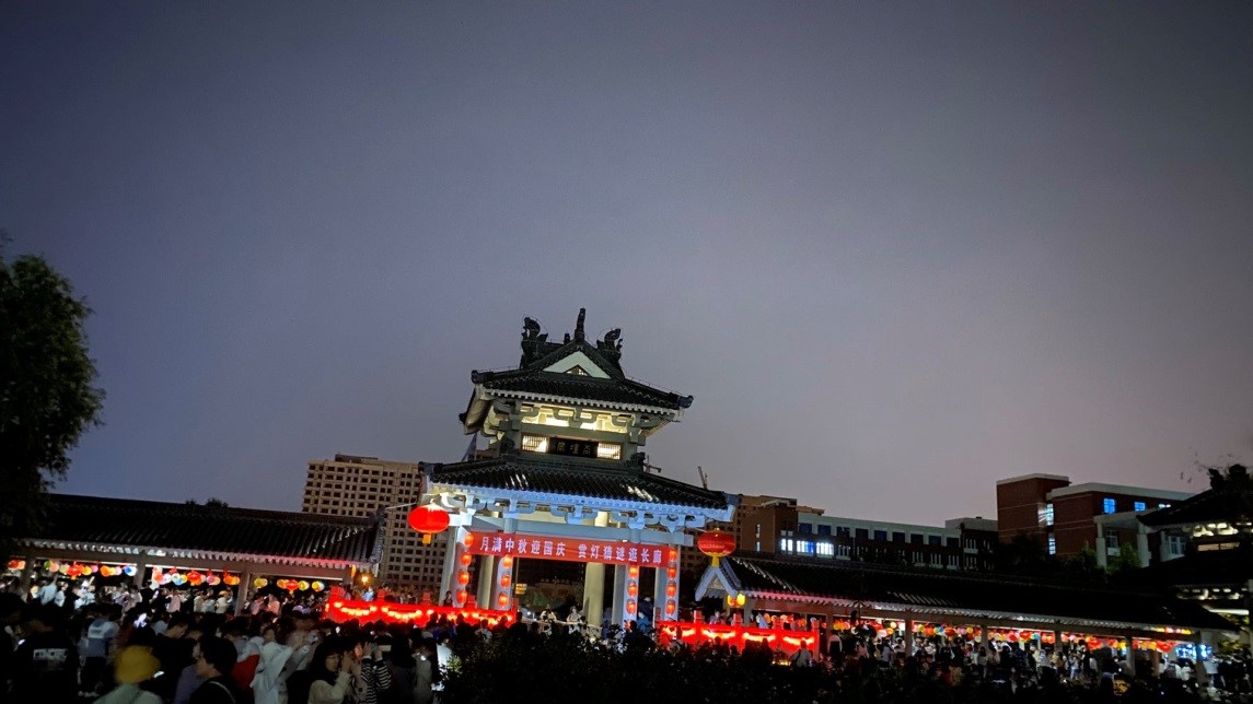 中秋月满园,国庆喜相逢。为深入贯彻落实立德树人根本任务,强化学校“文化育人”办学特色,深入挖掘中秋节、国庆节凝结的优秀传统文化和爱国主义内涵,培养学生社会主义核心价值观,教育引导学生弘扬传承中华优秀传统文化精神,我校于9月30日组织开展“过好中国节日 讲好中国故事——月满中秋迎国庆 赏灯猜谜逛长廊”主题活动。学校党委书记王玉华出席活动,并与上千名学生欢度中秋佳节,党委办公室、校长办公室主任牟伟,学生工作部(处)部长孙磊陪同参与活动。