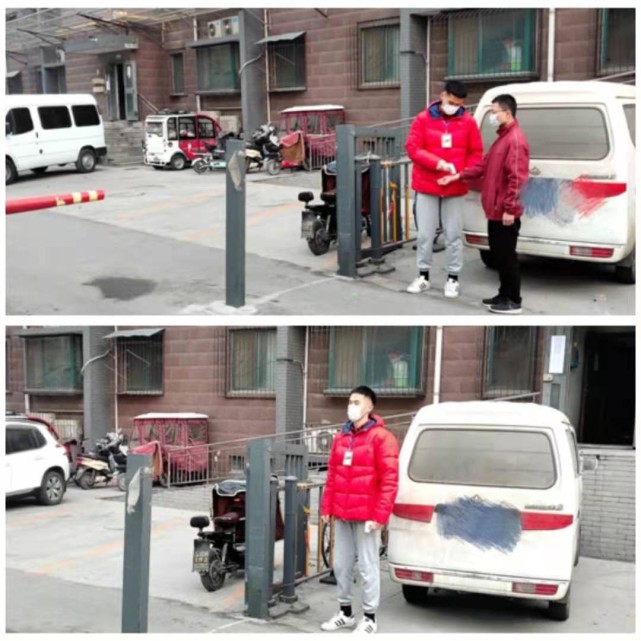 春节将至,返乡人逐渐增多,为保障社区安全,工作人员特此在社区卡口进行值班,张宸硕同学则认真结合社区防疫规定进行测温和巡查等工作。