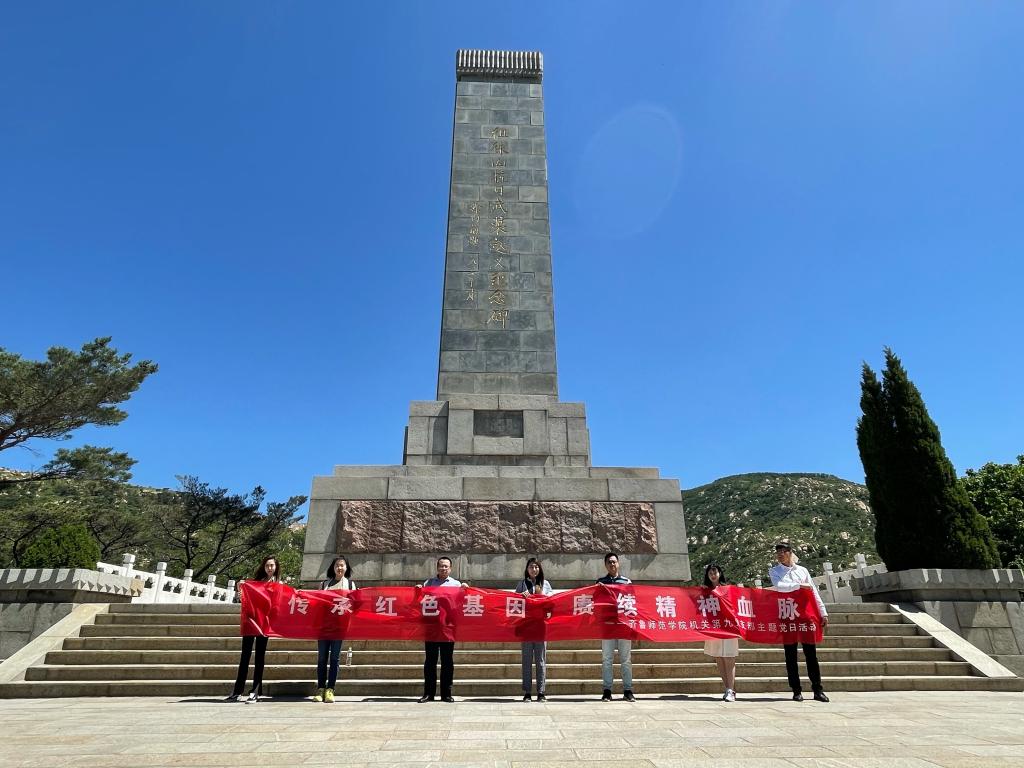 为了紧扣党史学习教育主旨要求,弘扬革命传统,坚定理想信念,增强党性修养,5月28日,齐鲁师范学院第六、第九党支部16名党员,在机关党委书记孔嵩峰的带领下,赴泰安徂徕山革命遗址、泰安主题党日活动中心,开展了“传承红色基因·赓续精神血脉”主题党日活动。