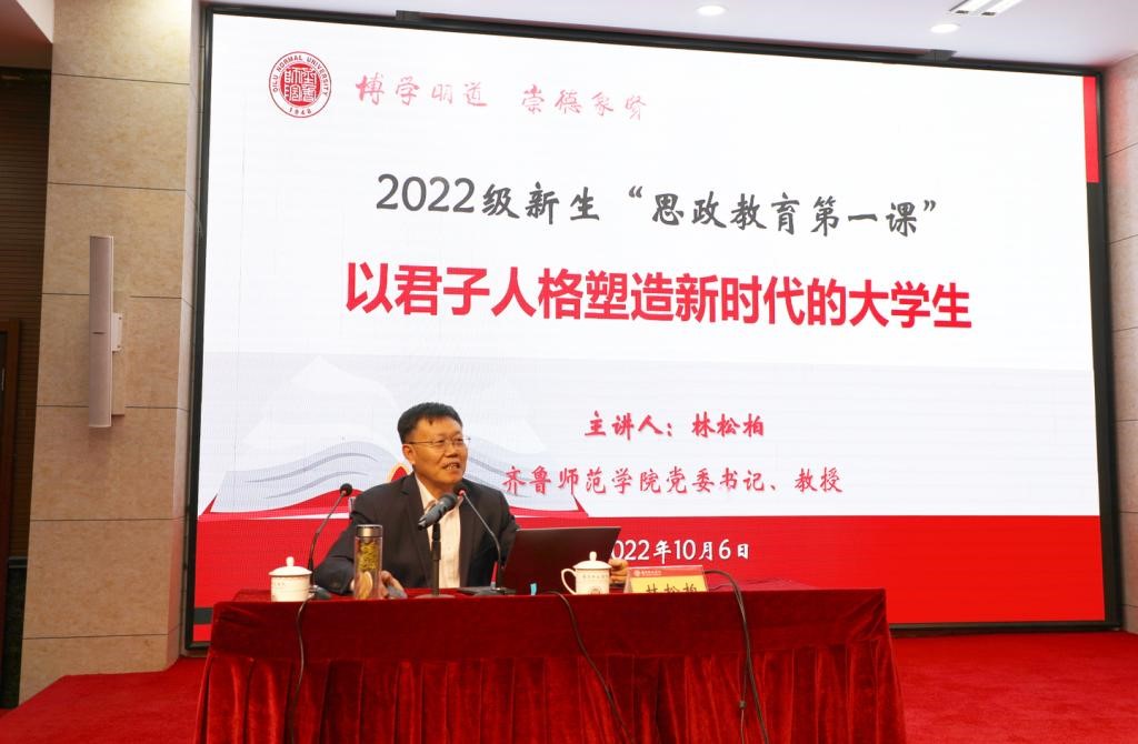 在全国上下喜迎党的二十大胜利召开之际,为深入学习贯彻落实习近平新时代中国特色社会主义思想,充分发挥思政课培根铸魂、以文化人的作用,激励全校师生深入学习学校第三次党代会精神,奋力开创内涵式高质量发展新局面,10月6日,学校党委书记林松柏以“以君子人格塑造新时代的大学生”为题给2022级全体新生讲授“思政教育第一课”,诠释培育君子人格、打造育人特色的重要意义。校党委副书记赵敏主持报告会。