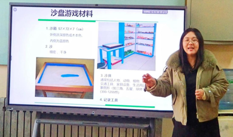 心理老师带领大家通过“蒙娜丽莎”破冰游戏,使大家快速的活跃熟悉起来,打破了彼此之间的陌生感和拘束感。同时,介绍了关于沙盘游戏的历史、沙盘游戏的适应特征和沙具的象征意义。