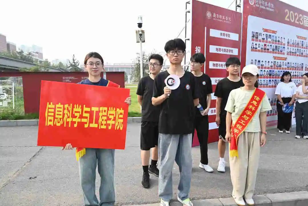 各学院精心策划,创新性地开展迎新工作;安排志愿者引导新生入学,有条不紊地引导新生办理报到手续;设计精美的展架展板、签名墙等让新生更好更快地了解自己的学院和专业。