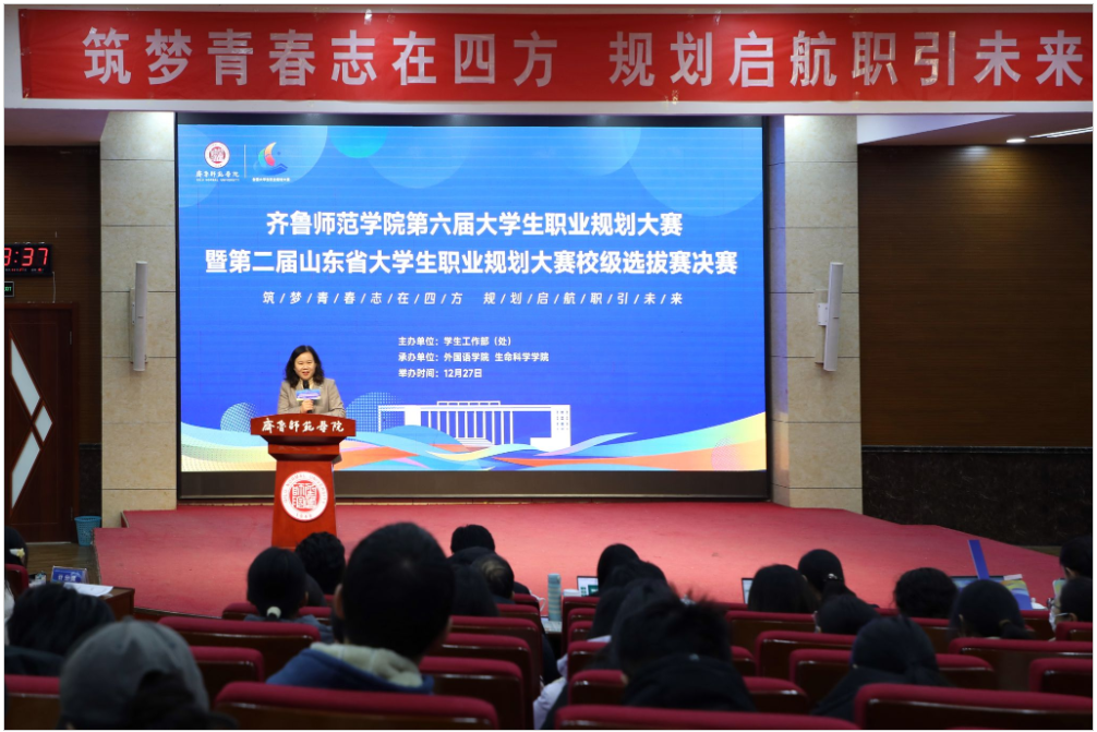 为进一步增强大学生职业规划意识,指导学生及早做好就业准备,以择业新观念打开就业新天地,促进高质量充分就业,12月27日,学校在章丘校区第一学术报告厅成功举办“筑梦青春志在四方,规划启航职引未来”第六届大学生职业规划大赛暨第二届山东省大学生职业规划大赛校级选拔赛。学校党委副书记赵敏,党委委员、党委宣传部部长孙磊出席活动。