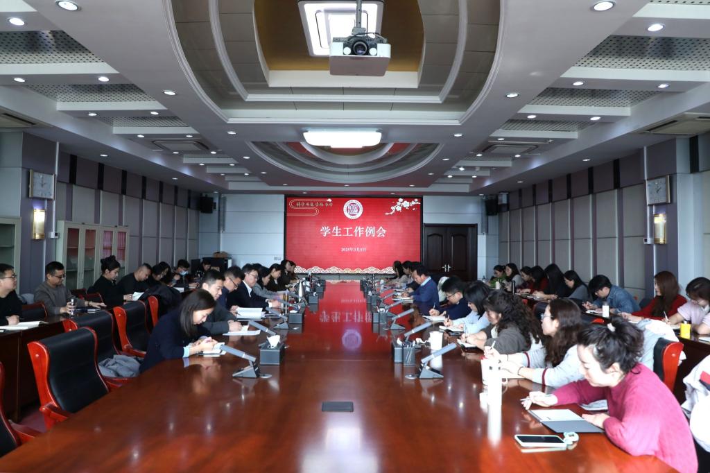 3月5日下午,学校在章丘校区第一会议室召开2025年春季学期第一次学生工作例会,学校党委书记林松柏出席会议并讲话,党委副书记赵敏主持会议。学生工作部(处)、团委负责人,各学院党委副书记、团总支书记,学生工作部(处)、团委全体工作人员参加会议。