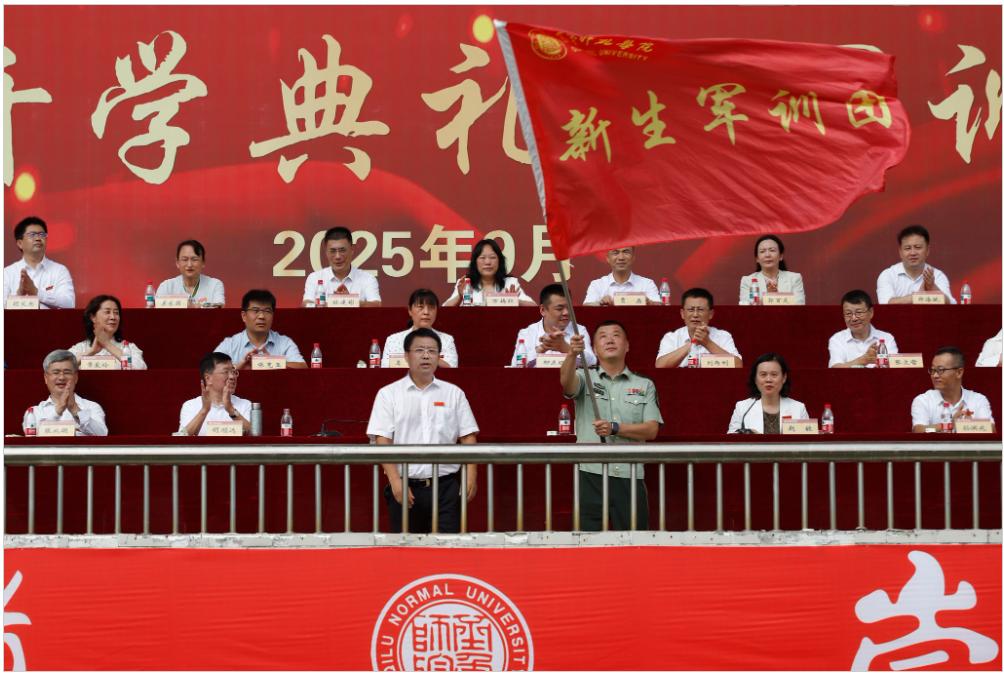在军训动员环节,郑秀文向2025级新生军训团授旗。他强调,全体新生要以昂扬的斗志投身军事训练,把军训当作挑战自我、提升自我的宝贵机会,锤炼过硬作风,展现新时代大学生的精神风貌。