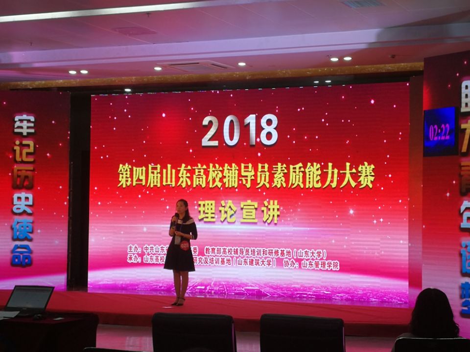 5月11-14日,由中共山东省委教育工委、教育部高校辅导员培训和研修基地(山东大学)主办,山东高校辅导员工作研究及培训基地(山东建筑大学)承办的第四届山东高校辅导员素质能力大赛暨专题培训在山东管理学院举行,共有来自全省高校131名辅导员参加比赛。我校辅导员刘若杨精心备战、表现优异,荣获第四届山东高校辅导员素质能力大赛二等奖。