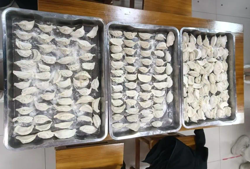 活动开始,同学们看着提前准备好的饺子馅、饺子皮等都兴奋不已。大家分工合作,有的调馅,有的擀皮,边包边聊,现场充满欢声笑语。有的同学包出了传统的半月形饺子,而有的同学则发挥创意,包出了类似花朵形状的饺子,引得周围同学阵阵赞叹。