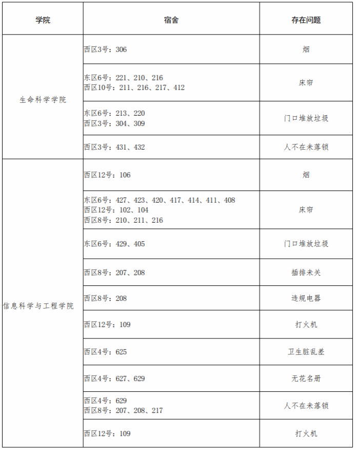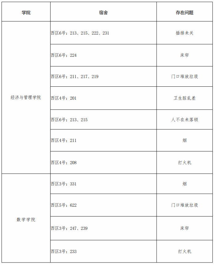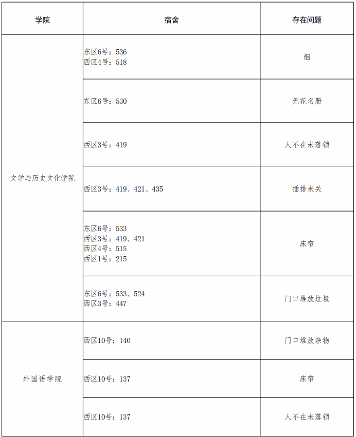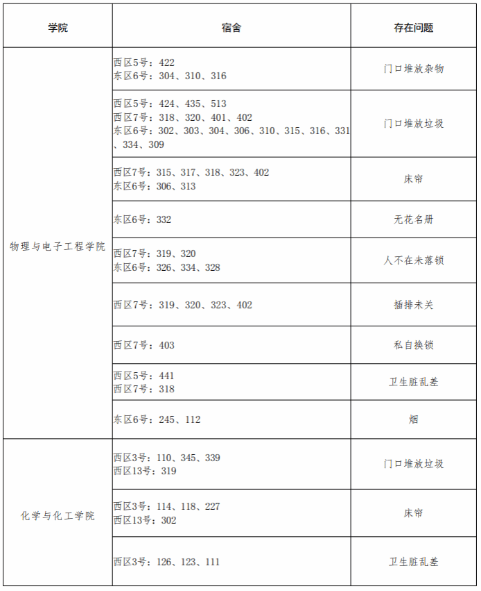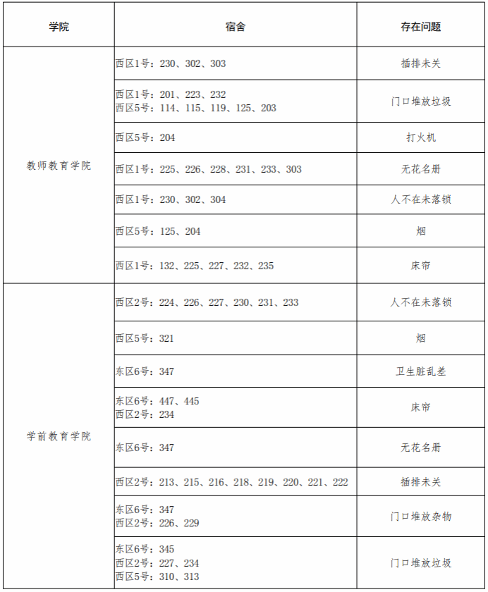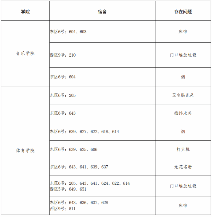 请各学院根据本周宿舍检查情况,认真整改,对问题宿舍学生进行严肃批评教育,对于学生违纪情况,落实好责任人并根据《齐鲁师范学院学生违纪处分规定》严肃处理,处理意见于 11 月 20 日下午 16:00 前交至学生工作部(处)学生管理中心报备。