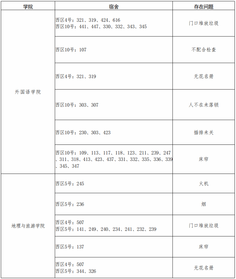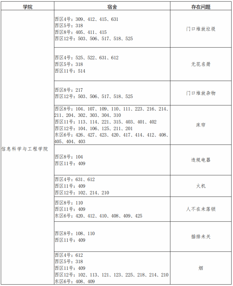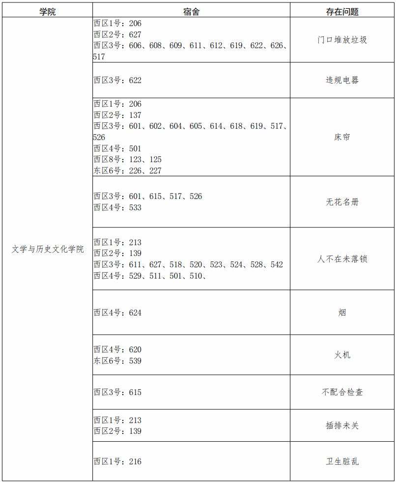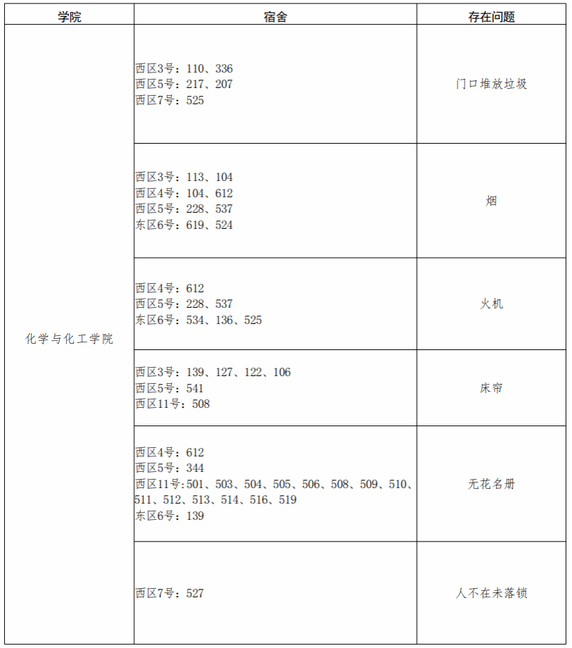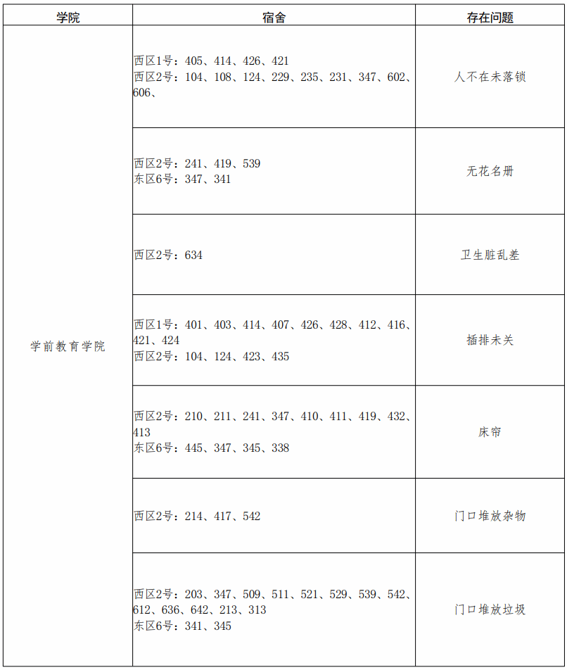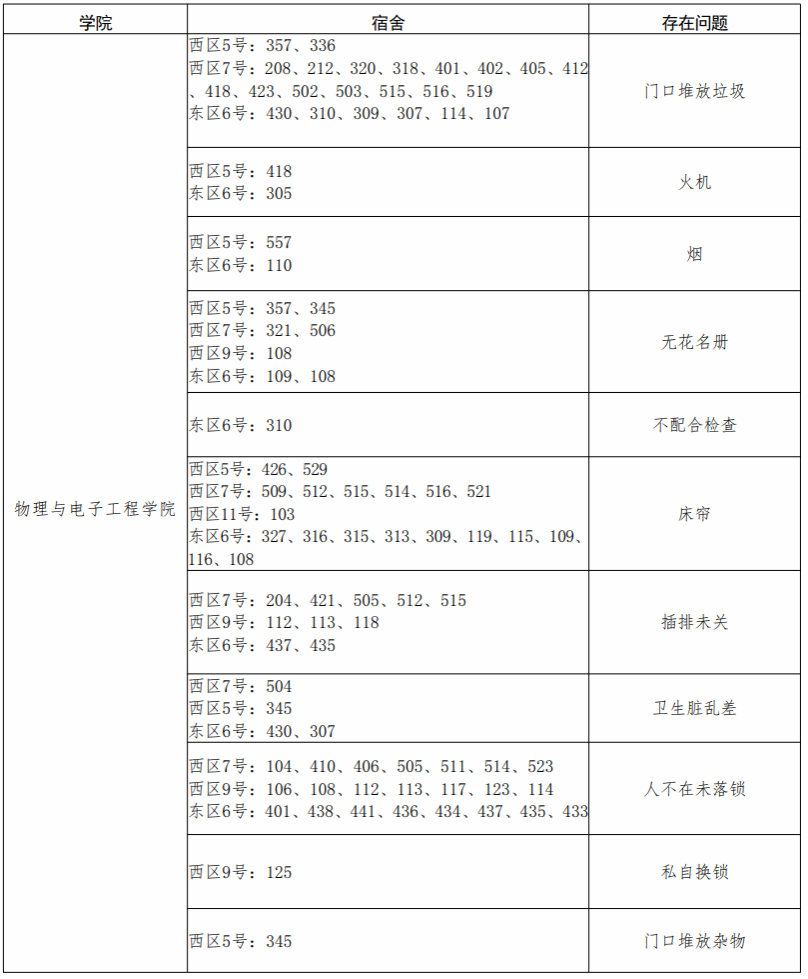 在本周学生宿舍集中大检查中,学生管理中心按照《齐鲁师范学院学生公寓管理规定》《齐鲁师范学院学生公寓卫生管理标准实施细则》等文件要求,对章丘校区全体宿舍进行检查,评出优秀宿舍75间,不合格宿舍514间。