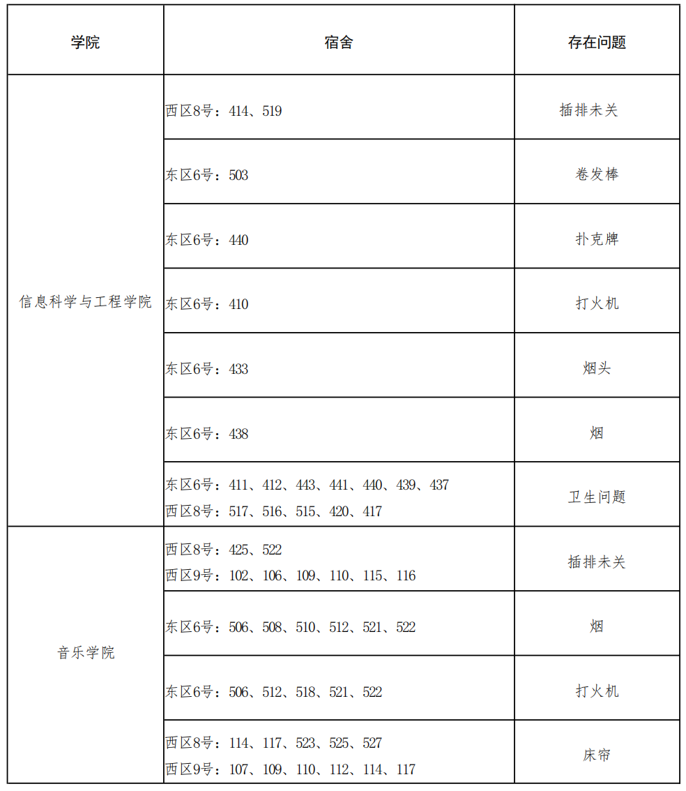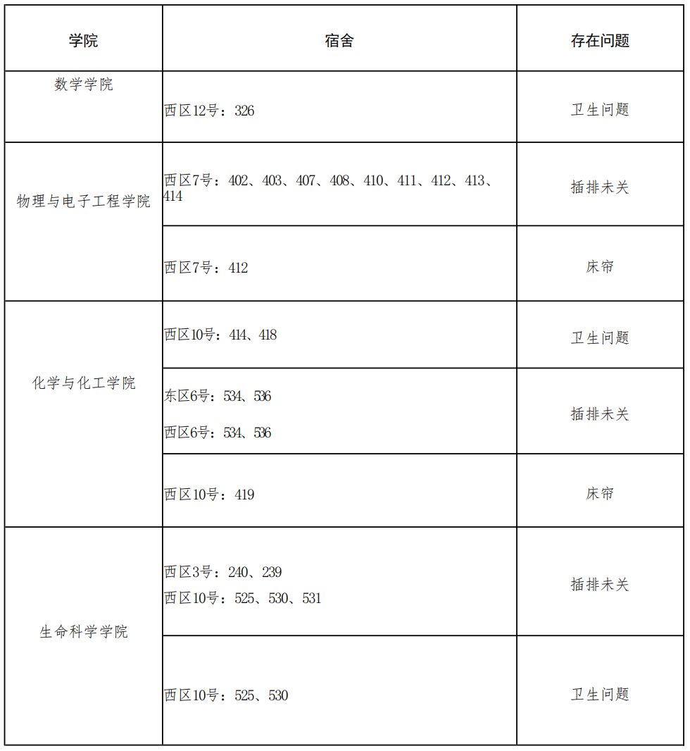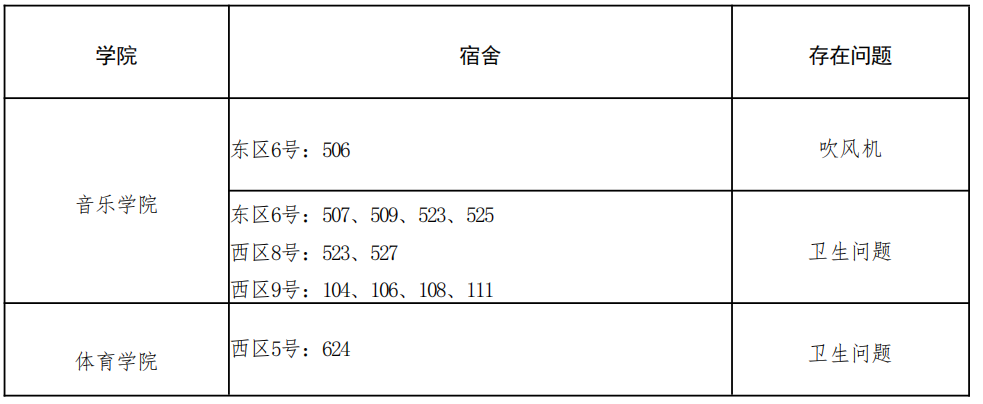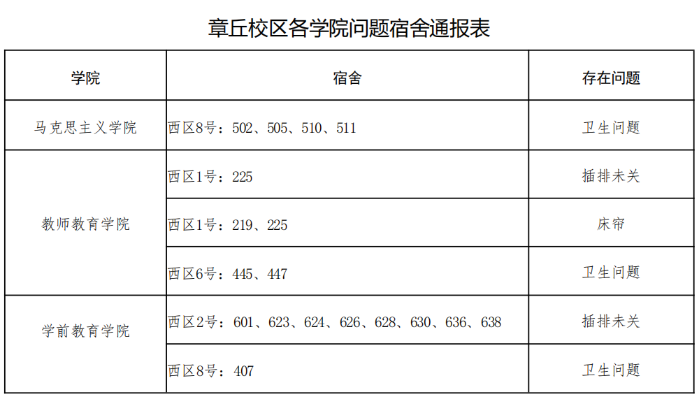 请各学院根据本周宿舍检查情况,认真整改,对问题宿舍学生进行严肃批评教育,对于学生违纪情况,落实好责任人并根据《齐鲁师范学院学生违纪处分规定》严肃处理,处理意见于3月6日下午16:00前交至学生工作部(处)学生公寓管理服务中心报备。