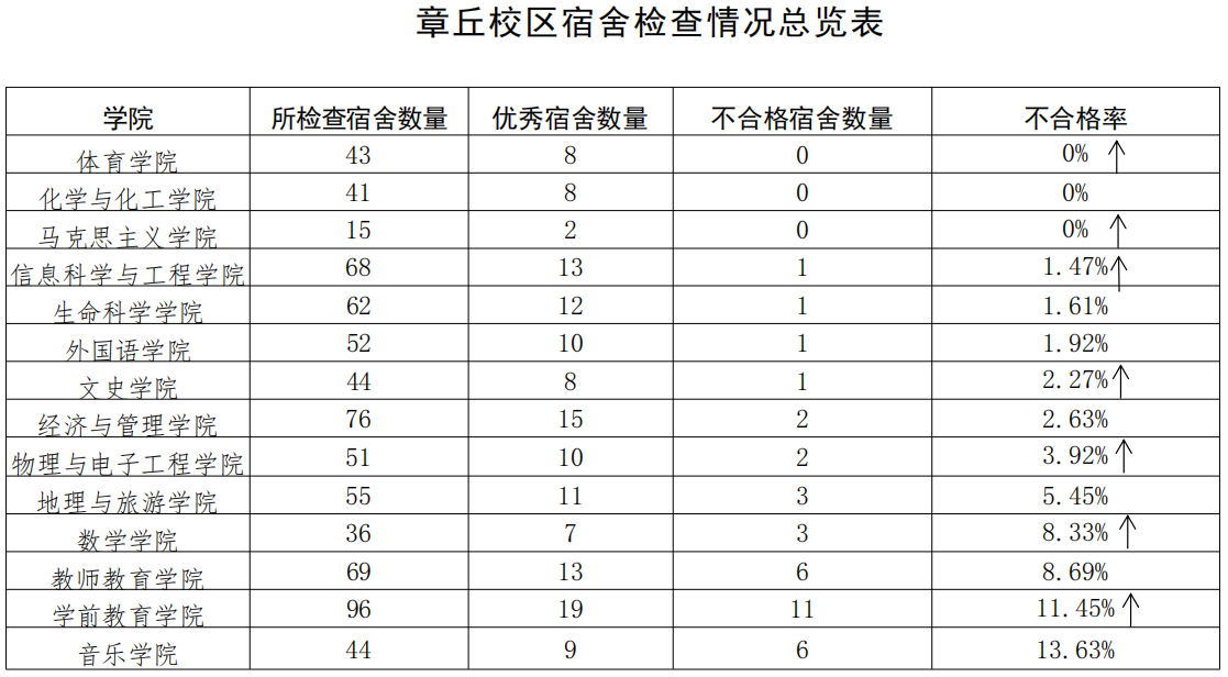在本周学生宿舍集中大检查中,学生公寓管理服务中心按照《齐鲁师范学院学生公寓管理规定》、《齐鲁师范学院学生公寓卫生管理标准实施细则》等文件要求,对章丘校区 752 间宿舍进行检查,评出优秀宿舍145 间,不合格宿舍 37 间。现公告如下: