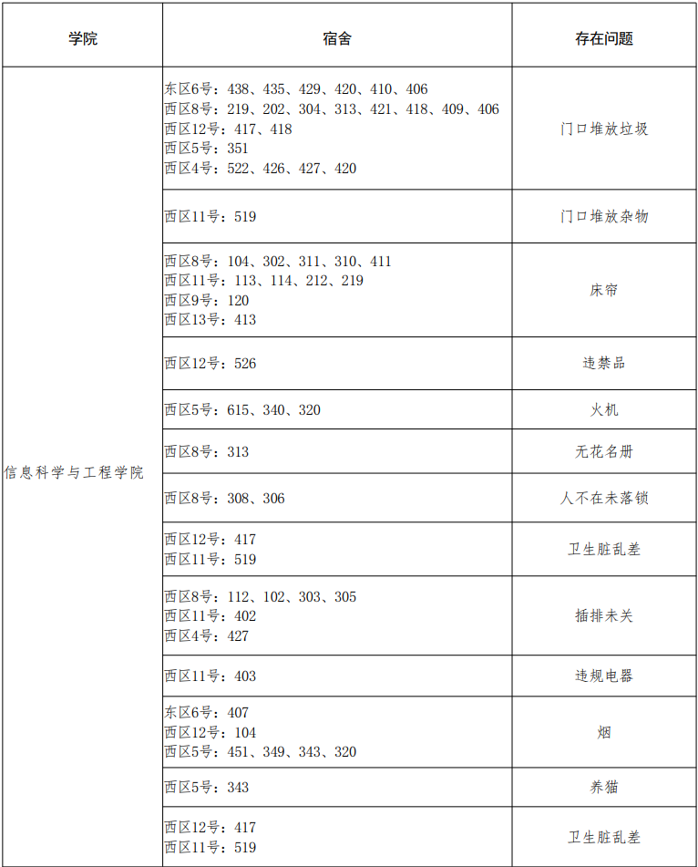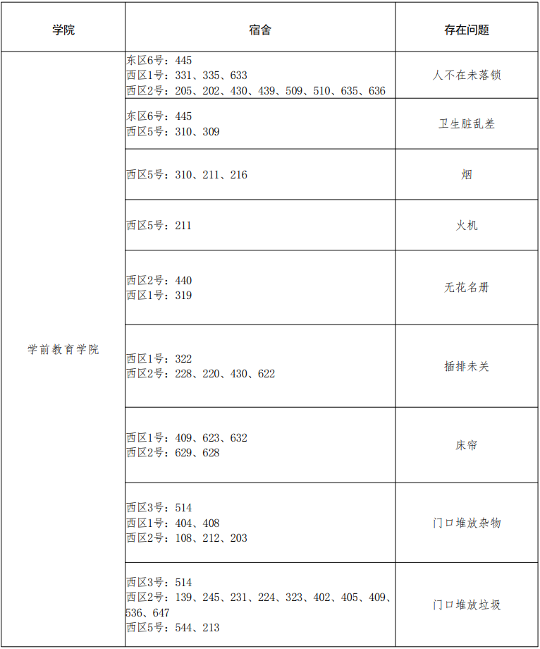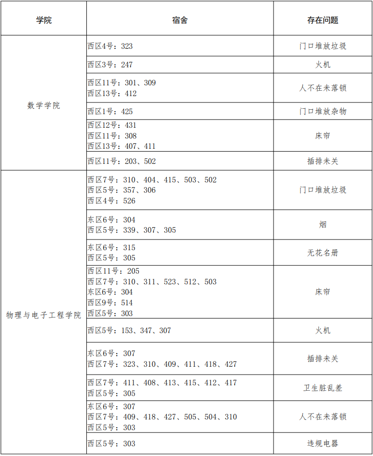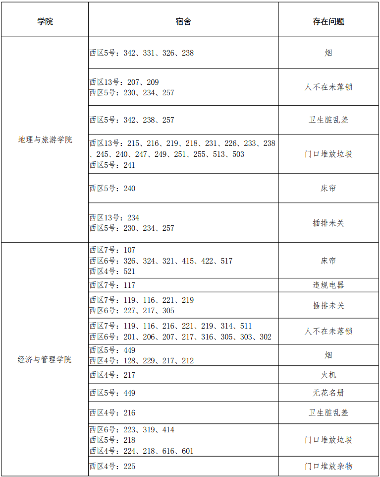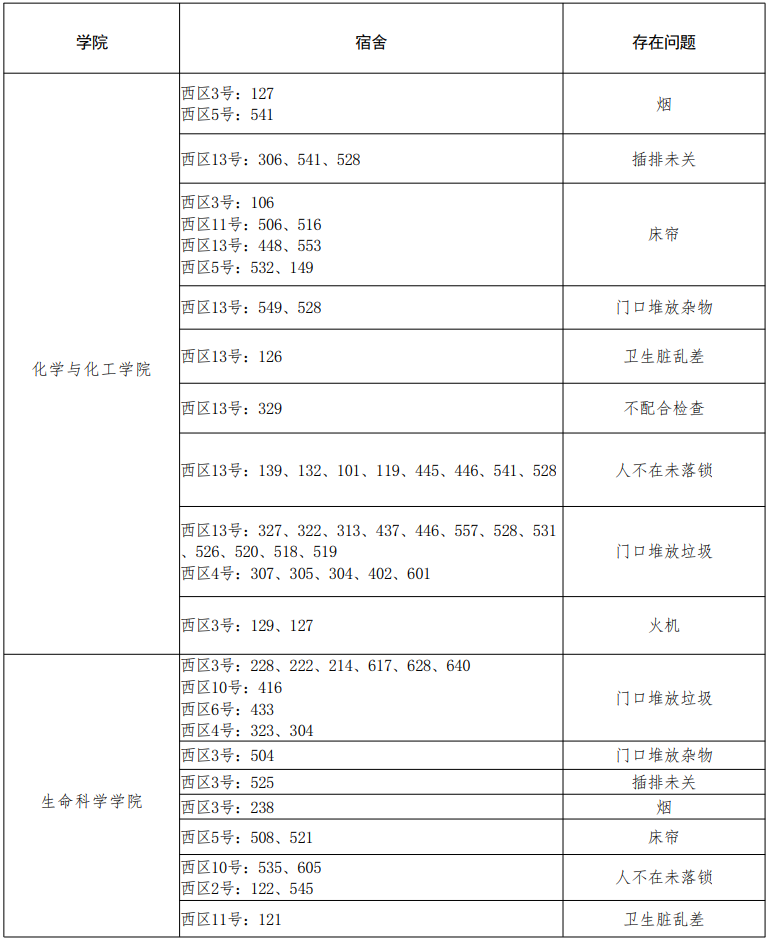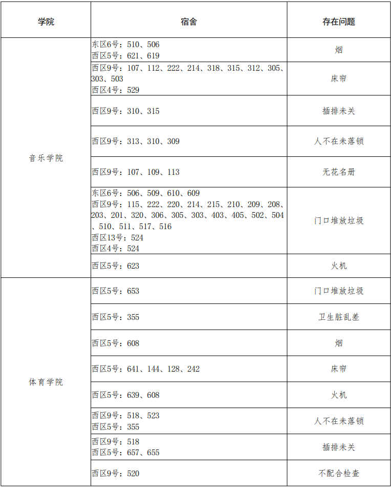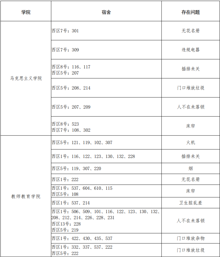 请各学院根据本周宿舍检查情况,认真整改,对问题宿舍学生进行严肃批评教育,对于学生违纪情况,落实好责任人并根据《齐鲁师范学院学生违纪处分规定》严肃处理,处理意见于 3 月 20 日下午 16:00 前交至学生工作部(处)学生管理中心报备。