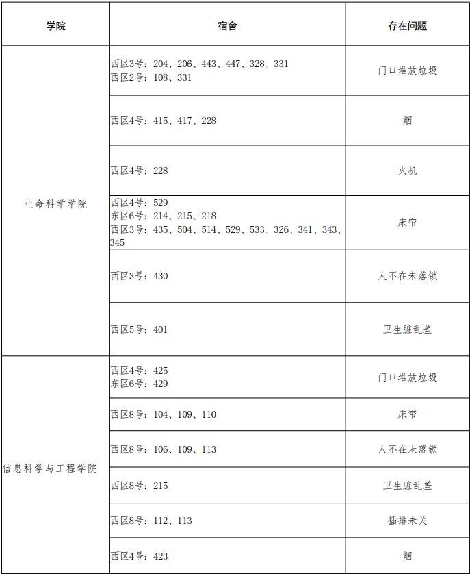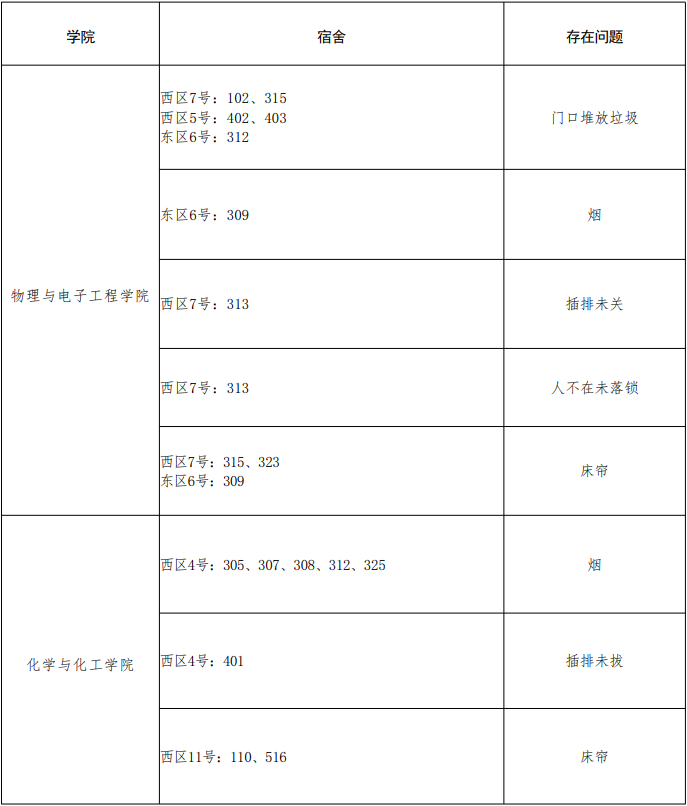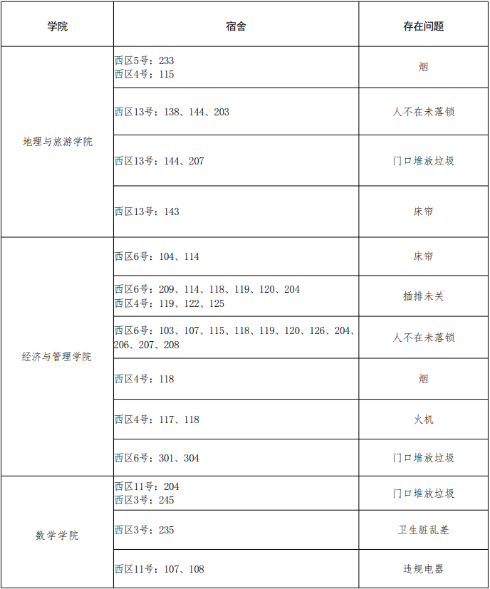 不合格宿舍代表(经济与管理学院西区 6 号楼 123 宿舍