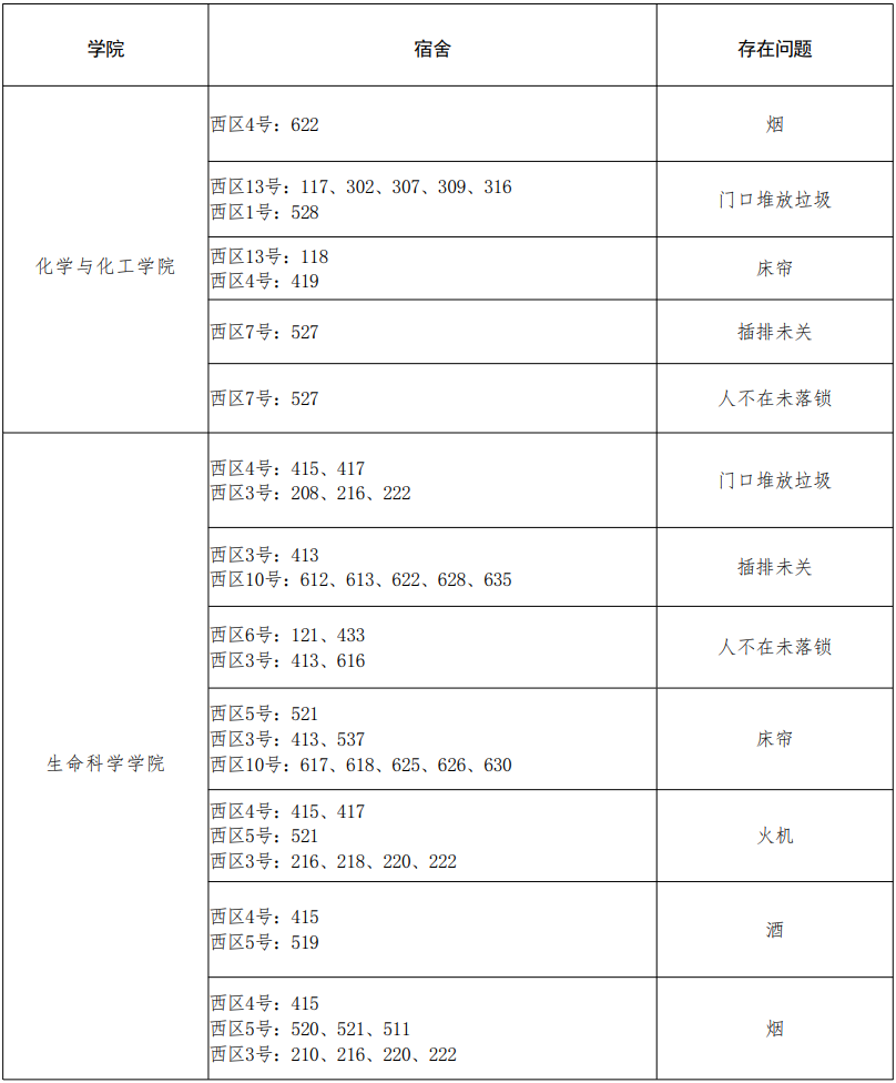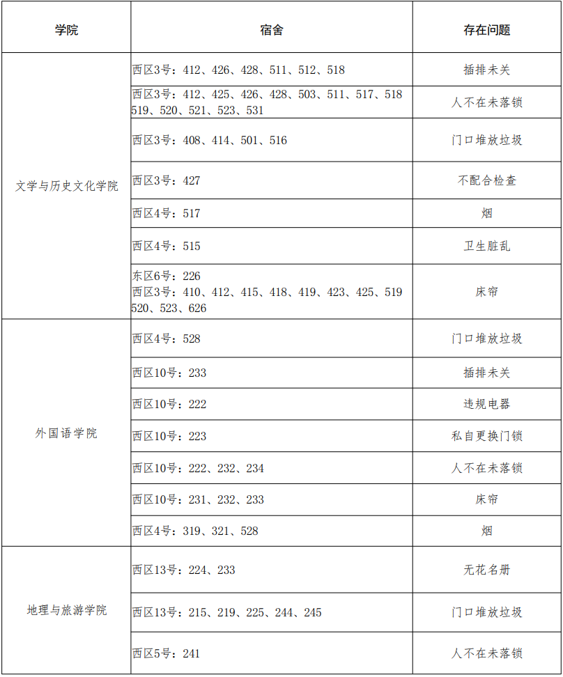 不合格宿舍代表(文学与历史文化学院西区 4 号楼 515 宿舍)