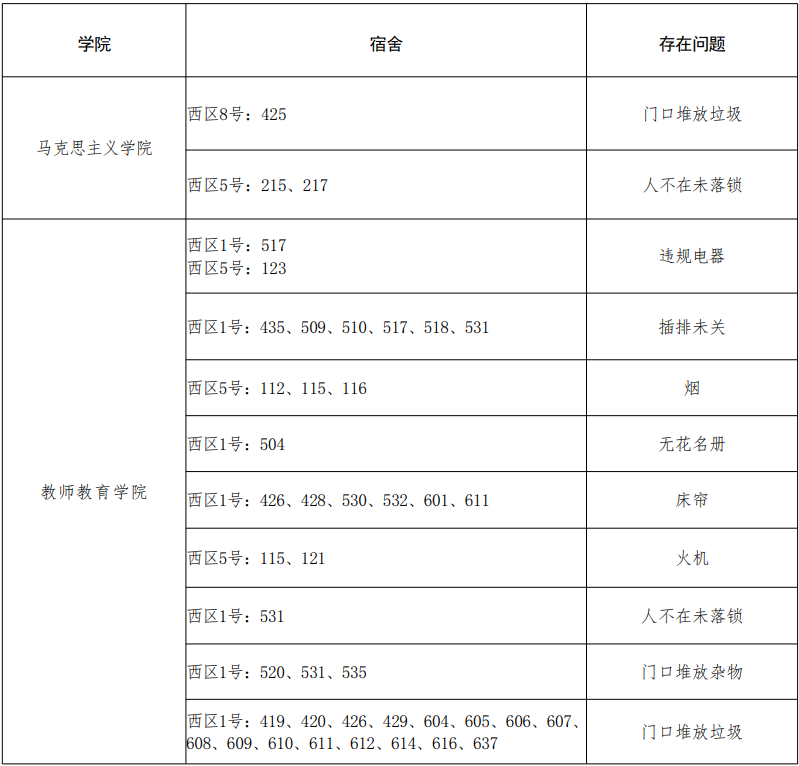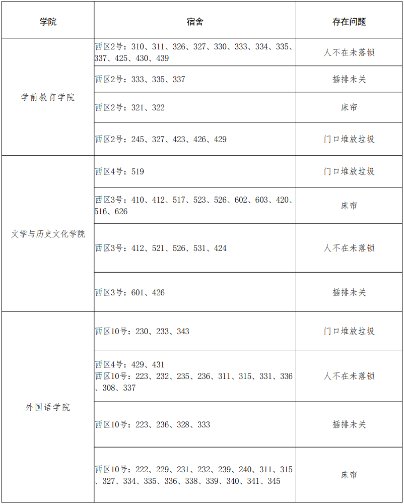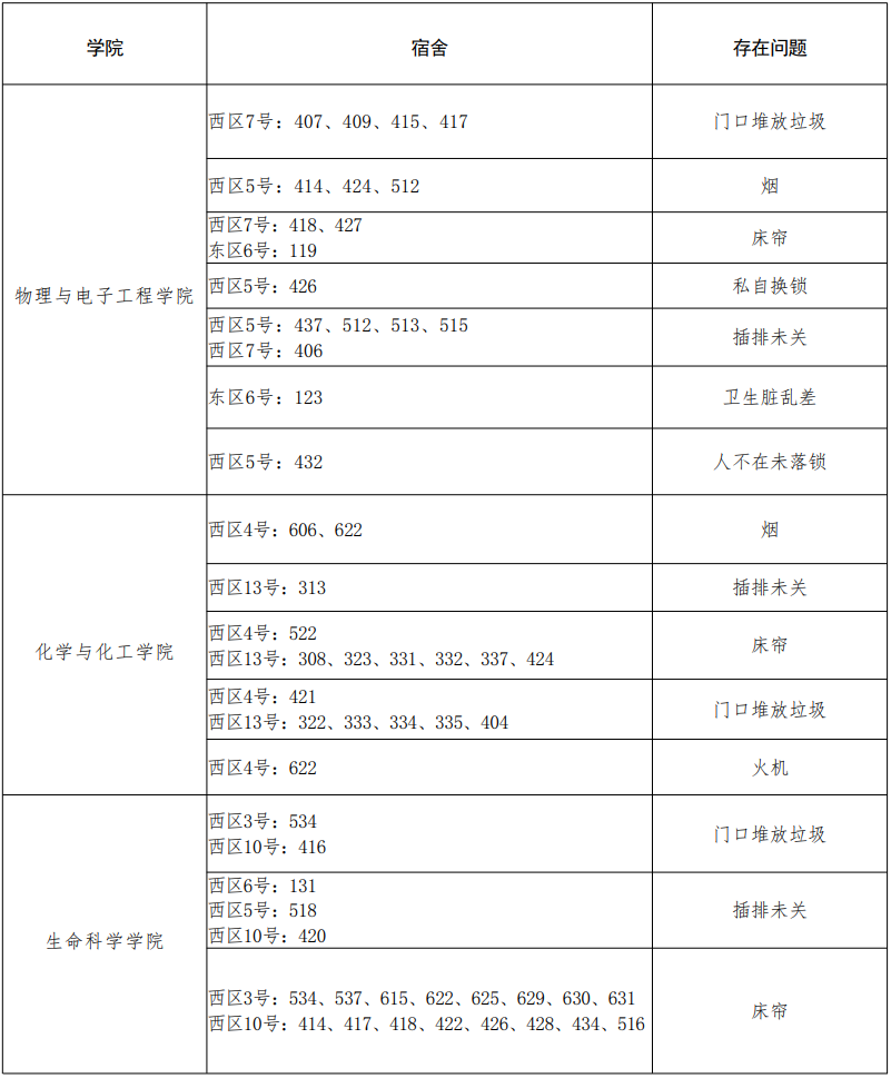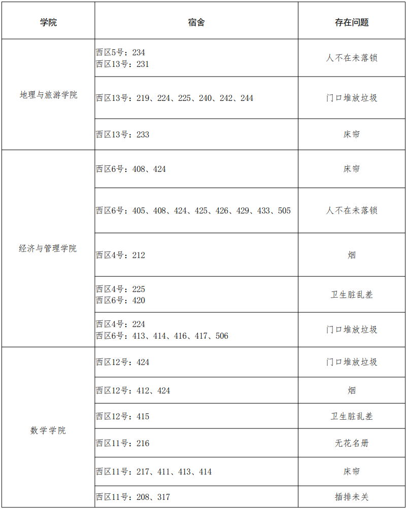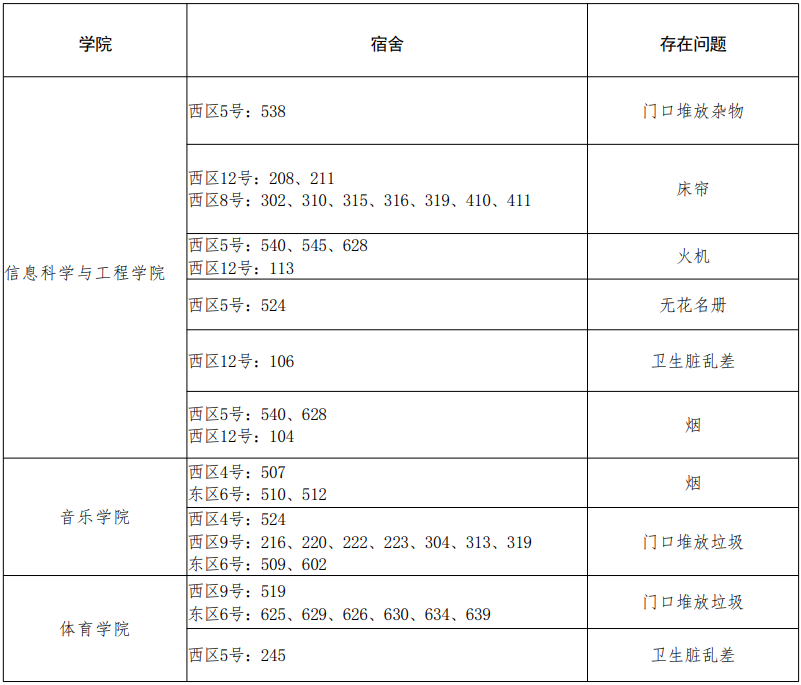请各学院根据本周宿舍检查情况,认真整改,对问题宿舍学生进行严肃批评教育,对于学生违纪情况,落实好责任人并根据《齐鲁师范学院学生违纪处分规定》严肃处理,处理意见于 3 月 27 日下午 16:00 前交至学生工作部(处)学生管理中心报备。