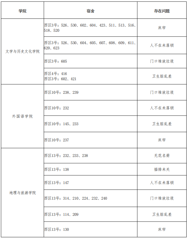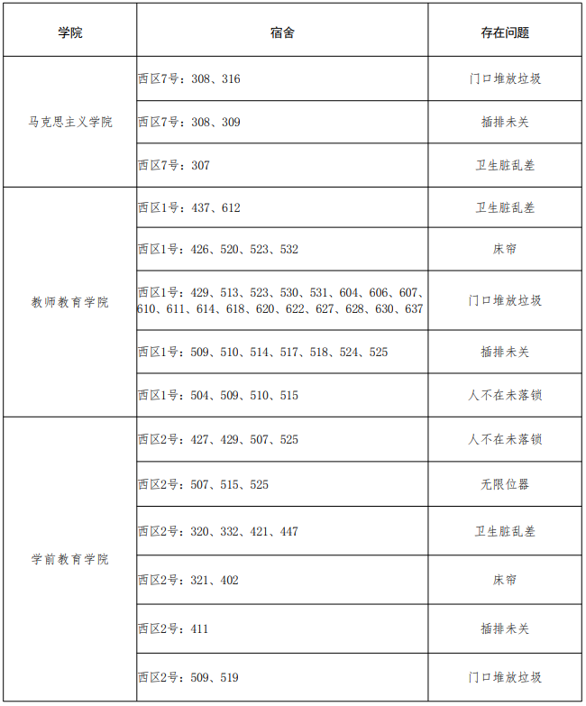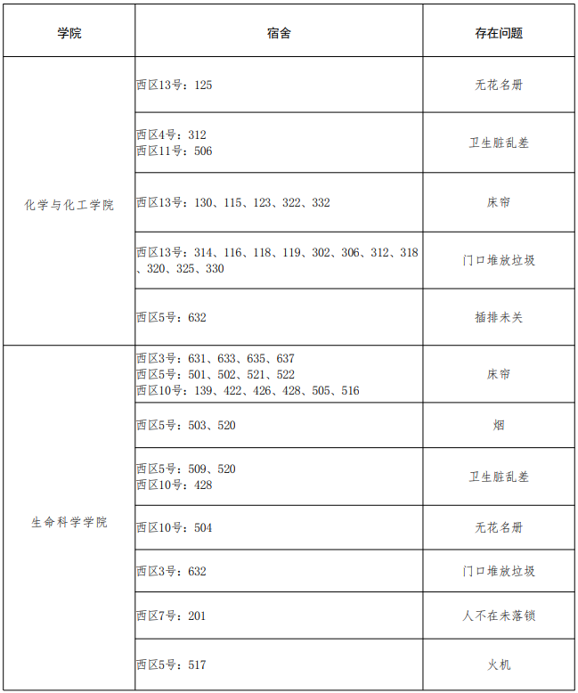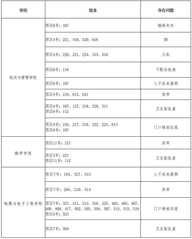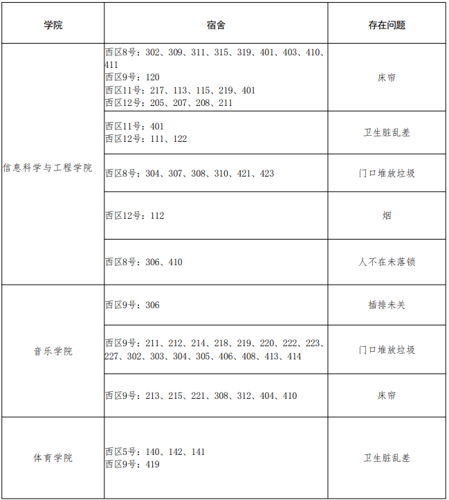 请各学院根据本周宿舍检查情况,认真整改,对问题宿舍学生进行严肃批评教育,对于学生违纪情况,落实好责任人并根据《齐鲁师范学院学生违纪处分规定》严肃处理,处理意见于 5 月 22 日下午 16:00 前交至学生工作部(处)学生管理中心报备。