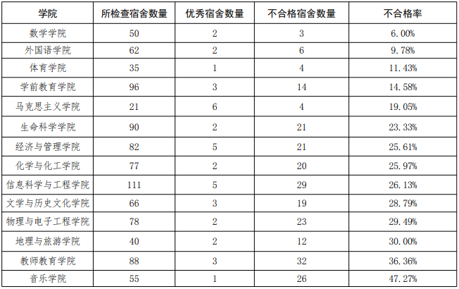 在本周学生宿舍集中大检查中,学生管理中心按照《齐鲁师范学院学生公寓管理规定》《齐鲁师范学院学生公寓卫生管理标准实施细则》等文件要求,对章丘校区951间全体宿舍进行检查,评出优秀宿舍39间,不合格宿舍234间
