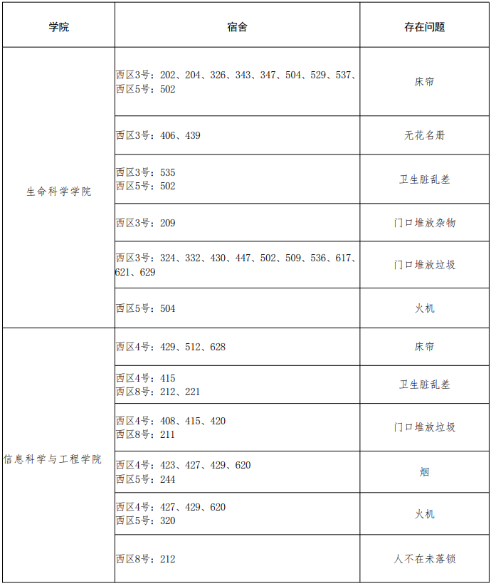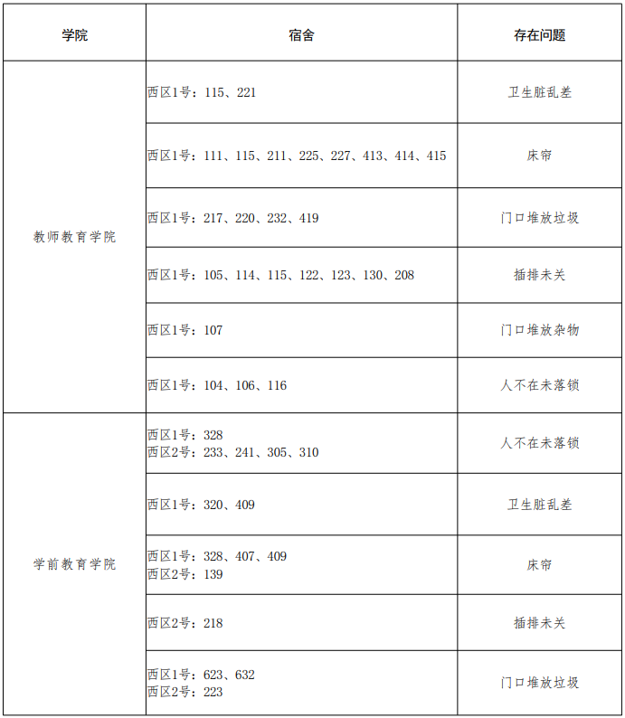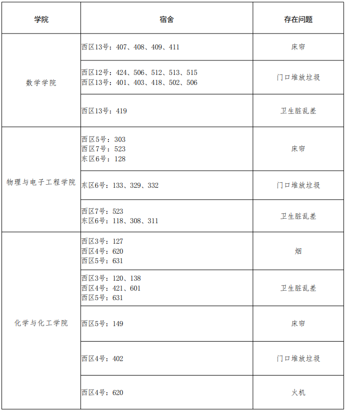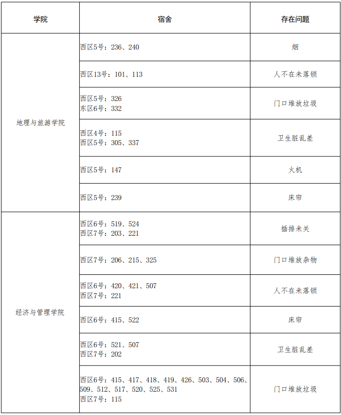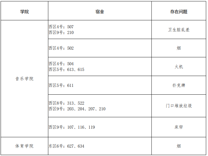 请各学院根据本周宿舍检查情况,认真整改,对问题宿舍学生进行严肃批评教育,对于学生违纪情况,落实好责任人并根据《齐鲁师范学院学生违纪处分规定》严肃处理,处理意见于 5 月 29 日下午 16:00 前交至学生工作部(处)学生管理中心报备。
