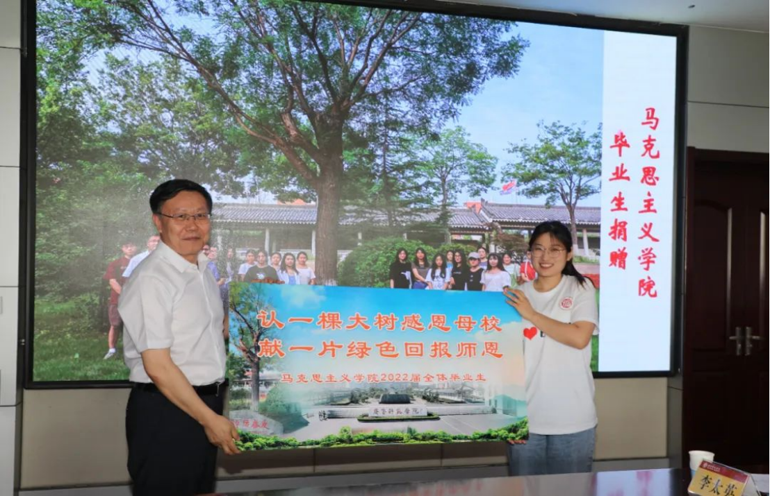 为感谢学校对毕业生的悉心培育,马克思主义学院毕业生代表向学校捐赠“认一棵大树感恩母校,献一片绿色回报师恩”;物理与电子工程学院全体毕业生向母校捐赠一架天文望远镜,表达“感念师恩、感谢母校、脚踏实地、仰望星空”的美好祝愿。林松柏代表学校向毕业生代表颁发了“校友联络员聘书”和“毕业纪念礼盒”。礼盒中包含着学校书记和校长致2022届毕业生的一封信、毕业纪念钥匙扣、师院书签、师院定制口罩。毕业纪念礼物满载着母校对毕业生的关爱;毕业生回馈母校的礼物,是学校建设发展的宝贵资源,更是学校永远引以为傲的亮丽名片。