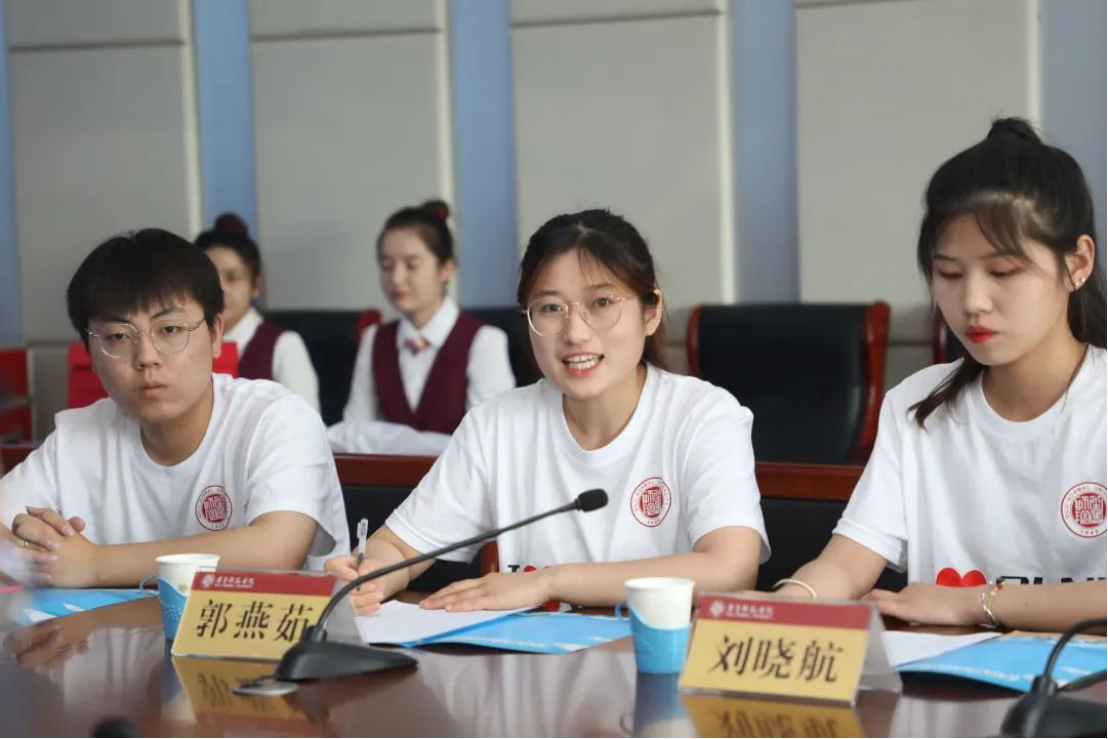 座谈会上,学生工作部(处)部长孙磊介绍我校2022届毕业生总体情况,团委书记孔庆松介绍我校2022届毕业生入选西部计划情况,教师代表、经济与管理学院郭莹进行发言,表达对2022届毕业生的美好祝愿。