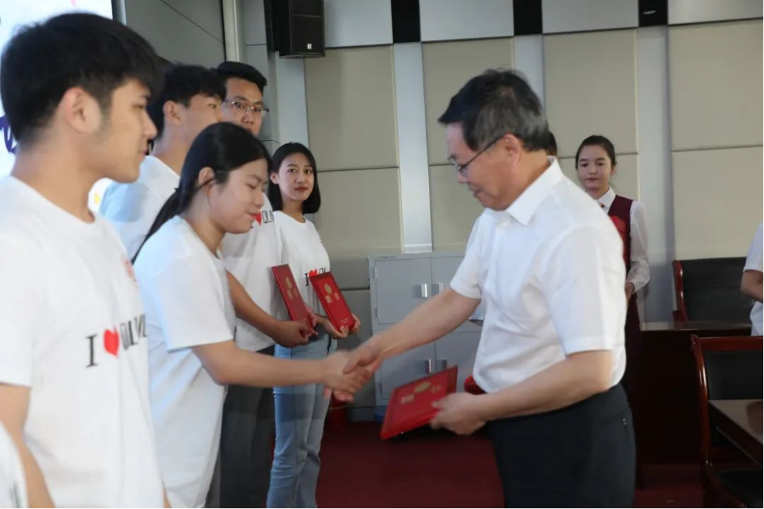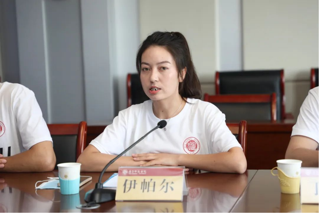入选“西部计划”毕业生代表教师教育学院的刘增博和新疆籍少数民族毕业生代表数学学院伊帕尔·伊敏托合提谈到:他们积极响应党和国家号召,即将远赴祖国的西部,扎根基层,到祖国最需要的地方奉献青春力量,表示在未来的岗位上,将秉承师院学子的精神风貌,不忘初心、牢记使命,甘于奉献、勤于实践,在报效祖国、服务人民中绽放青春力量。