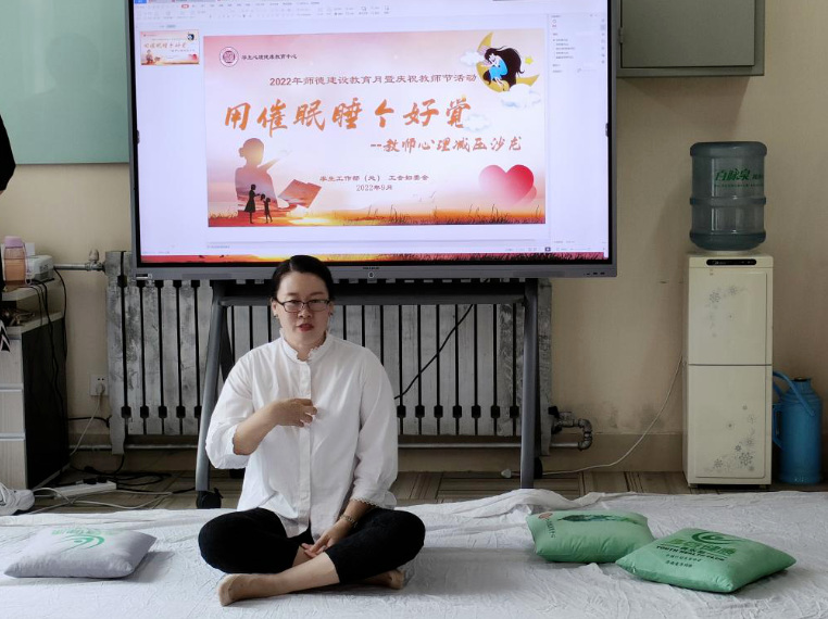 为持续加强新时代师德师风建设,进一步推动教职工身心健康发展,帮助教师缓解工作压力,增强集体归属感,9月22日学生工作部(处)、 工会妇委会在章丘校区团体心理活动室联合举办“用催眠睡个好觉”教师心理减压沙龙。活动由学生心理健康教育中心主任心理咨询师苏睿主持。
