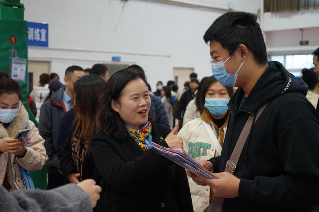 为深入贯彻落实党中央、国务院关于高校毕业生就业工作决策部署和省委省政府工作要求,用好校园招聘主渠道,抢抓秋冬招聘黄金期,促进2024届毕业生高质量充分就业,11月25日,由山东省人力资源和社会保障厅主办,齐鲁师范学院承办的“职引未来·就选山东”2023年高校毕业生省级集中招聘活动暨学校2024届毕业生精准对接供需见面会在章丘校区体育馆成功举办。来自省内外的300余家用人单位到场参会,6000余名学生踊跃参加,校党委副书记赵敏现场调研用人单位人才招聘情况。