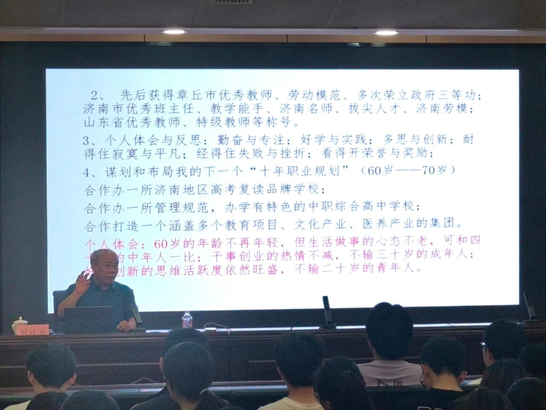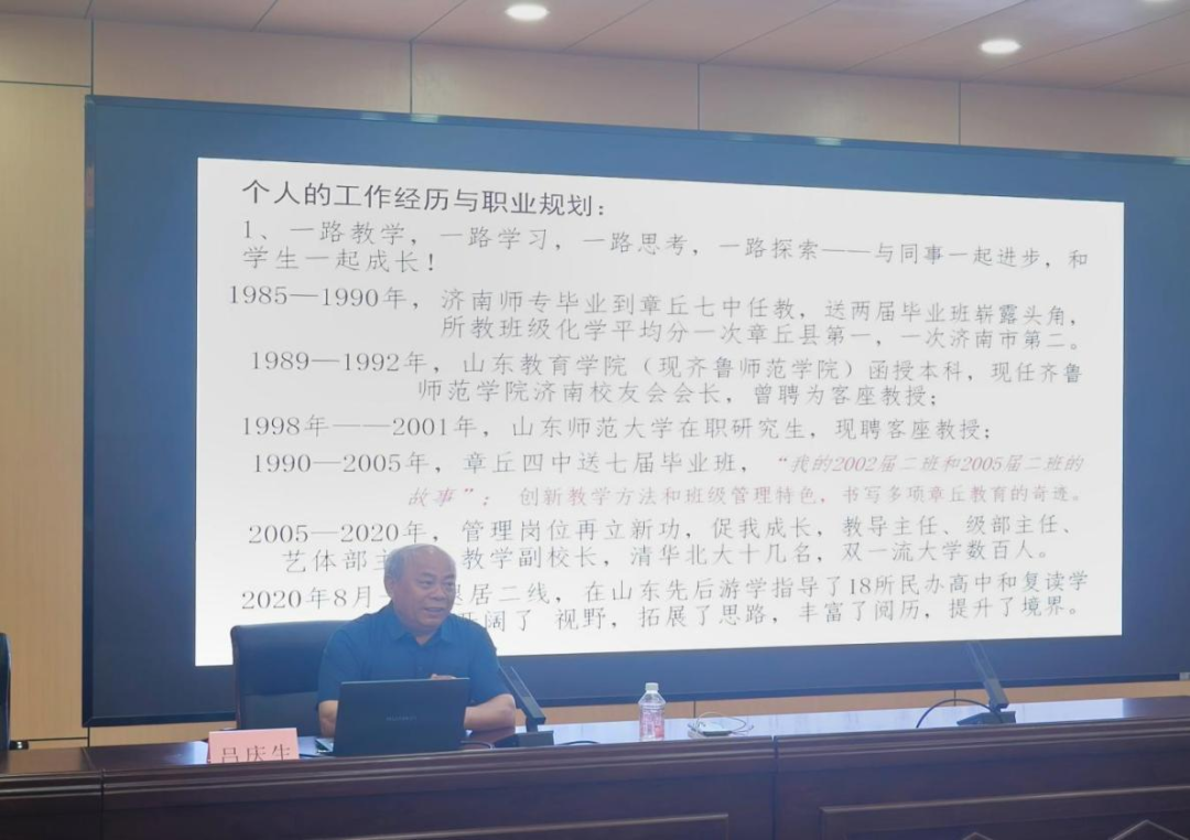 吕庆生从个人的教育、教学经历出发,向同学们分享了我国基础教育工作的发展及特点,作为一名基础教育工作者在职业发展中如何从一名年轻教师成长为合格的教师,从一名专任教师转变为一名优秀的班主任,从一名基础教育工作者发展为一名有情怀的教育工作领导管理者。他结合典型的案例,为同学们的职业生涯发展提供了很好的借鉴和建议。