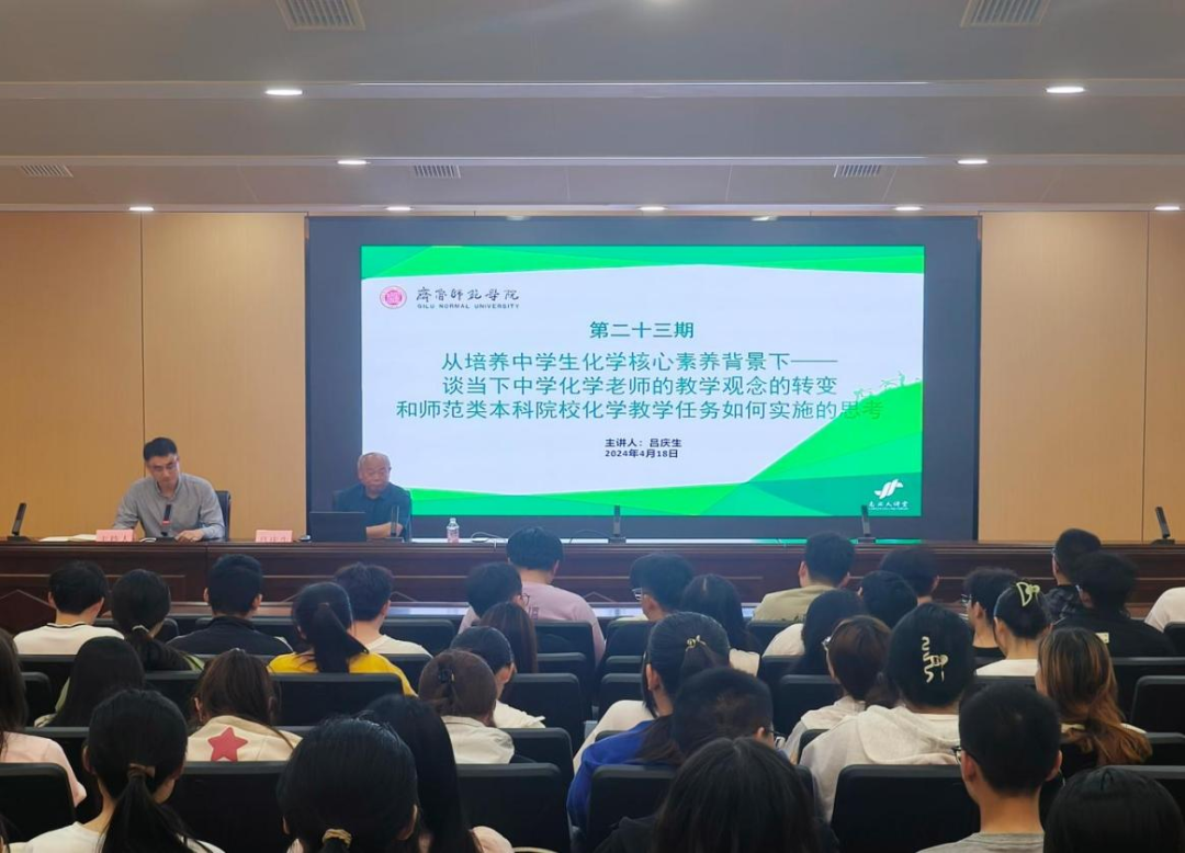 4月18日,化学与化工学院举办志业大讲堂第二十三期,优秀校友、济南市章丘区第四中学前副校长、高级教师吕庆生受邀做题为《从培养中学生化学核心素养背景下——谈当下中学化学教师的教学观念的转变和师范类本科院校化学教学任务如何实施的思考》的报告。活动由化学与化工学院党委副书记巩磊主持。