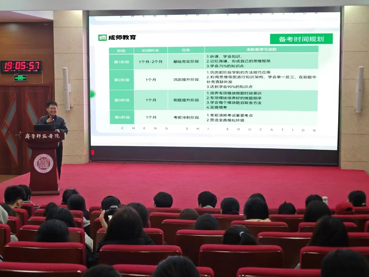 为帮助2024届师范类毕业生更好地了解教师编招考形势、明确备考重点、把握关键节点、抓住备考要点、增强考试信心,11月4日晚,学生工作部(处)、数学学院在章丘校区学术报告厅联合举办“志业大讲堂”高质量就业赋能—教师编制备考指导专题讲座。济南成师教育学校校长、教师招聘资深辅导专家关金轩受邀主讲。讲座由数学学院党委副书记初益辰主持,来自全校各学院的300余名师范类专业毕业生现场聆听。