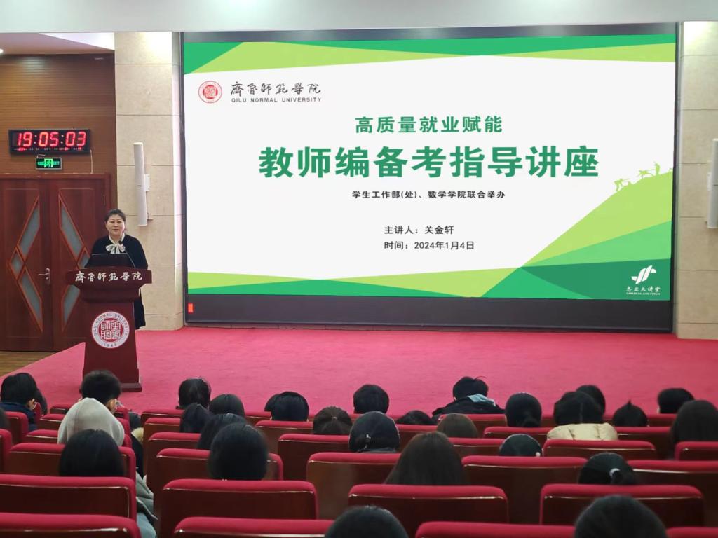关金轩围绕师范类毕业生自身优势、社会对师范类人才的需求、师范类人才的发展前景等方面对考研、考编、考公、国企招考、培训机构等几类师范类毕业生主要的毕业去向进行了简要分析。接着,他详细解读了山东省2024年教师编招考政策,并根据2023年山东省各地市幼儿园、中小学教师岗位招聘情况、各笔试科目占比情况、教师编考试考察重点方向等对2024年教师编考试的考情进行了预判分析,对学生们关注的备考重点、高分技巧、面试攻略等内容进行了现场讲解指导。