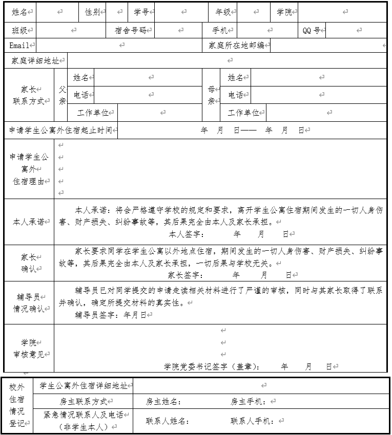 齐鲁师范学院学生在学生公寓外住宿申请表