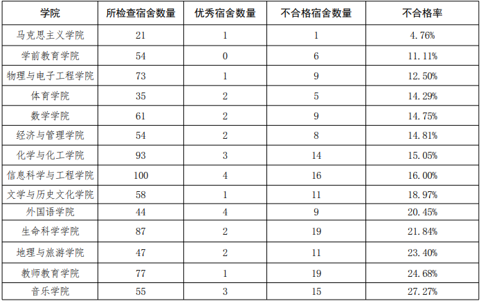 在本周学生宿舍集中大检查中,学生管理中心按照《齐鲁师范学院学生公寓管理规定》《齐鲁师范学院学生公寓卫生管理标准实施细则》等文件要求,对章丘校区859间全体宿舍进行检查,评出优秀宿舍28间,不合格宿舍152间。