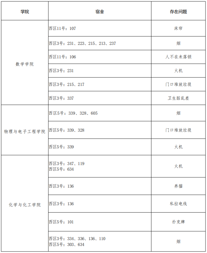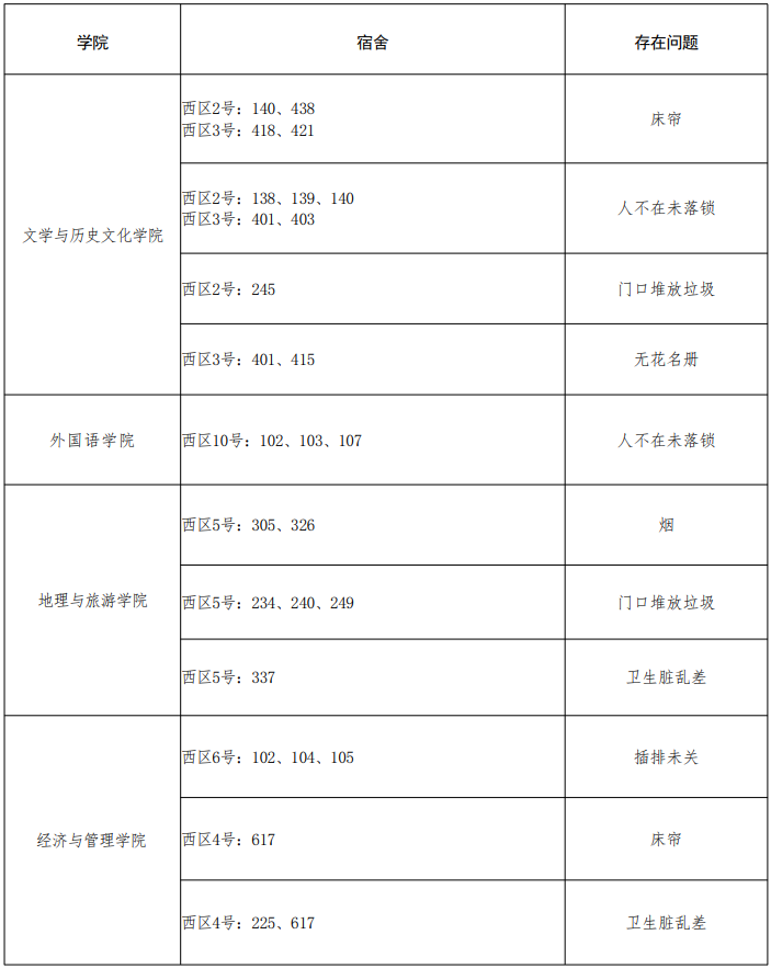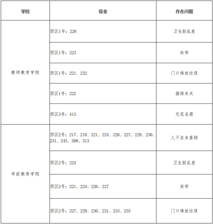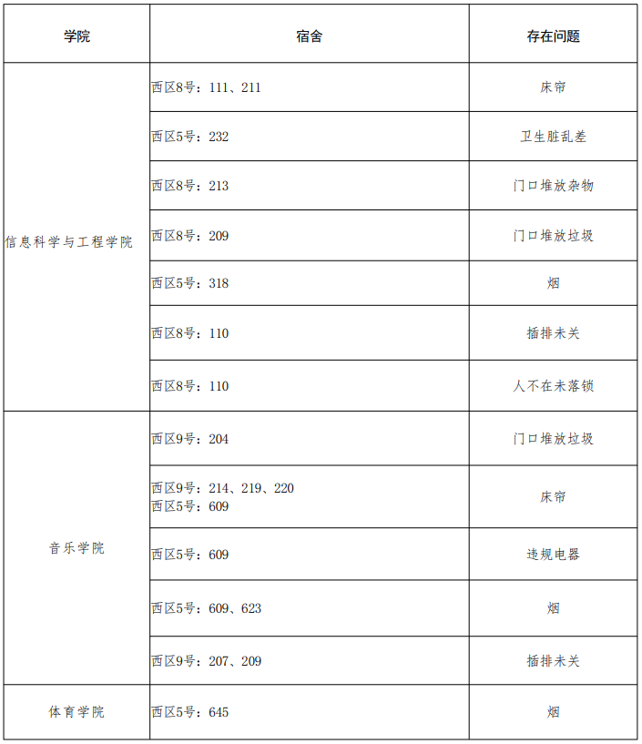 请各学院根据本周宿舍检查情况,认真整改,对问题宿舍学生进行严肃批评教育,对于学生违纪情况,落实好责任人并根据《齐鲁师范学院学生违纪处分规定》严肃处理,处理意见于 9 月 30 日下午 16:00 前交至学生工作部(处)学生管理中心报备。