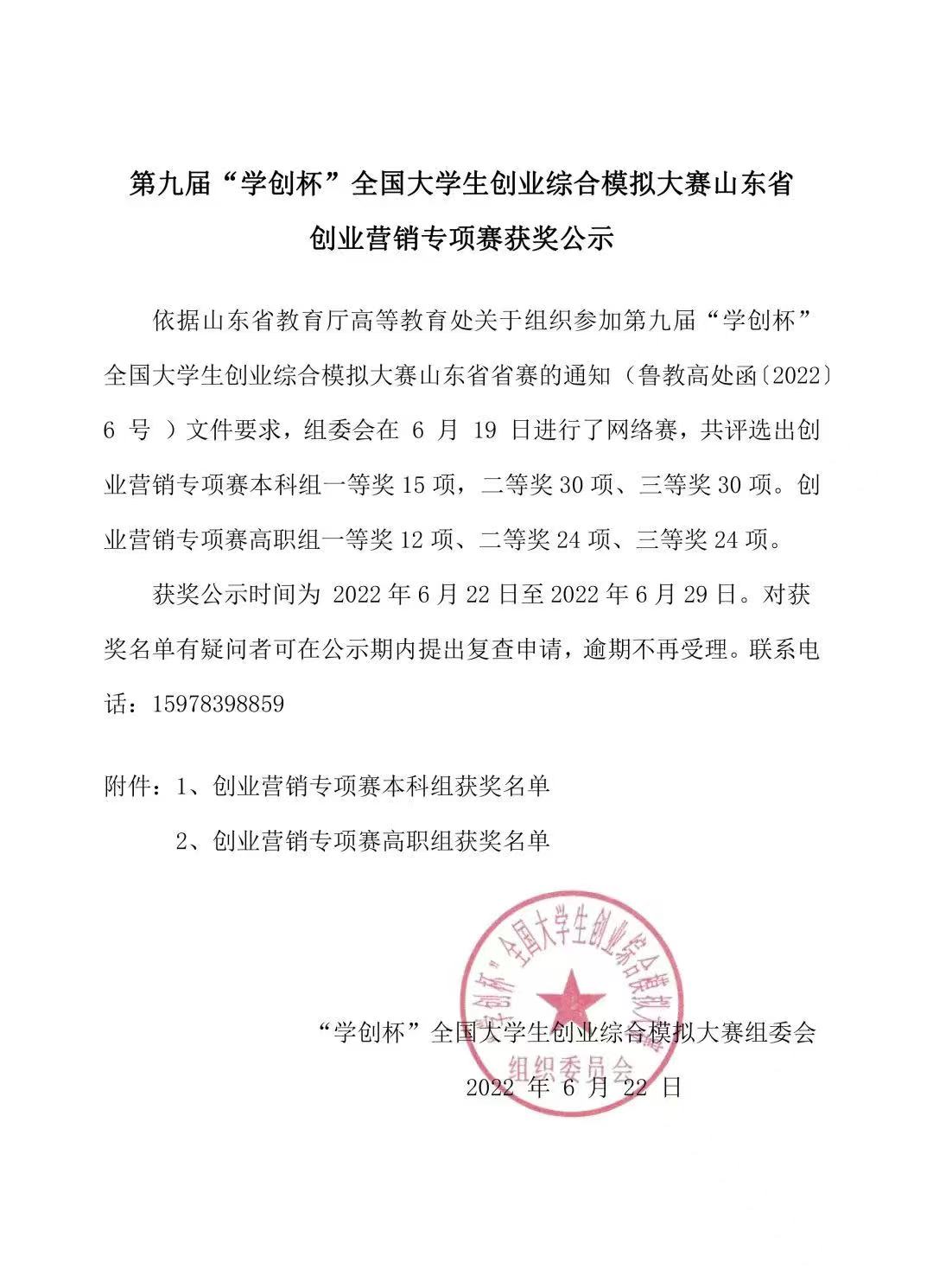 近日,第九届“学创杯”全国大学生创业综合模拟大赛省赛落下帷幕,学校首次组织参加此项赛事,取得二等奖一项、三等奖两项的优异成绩。