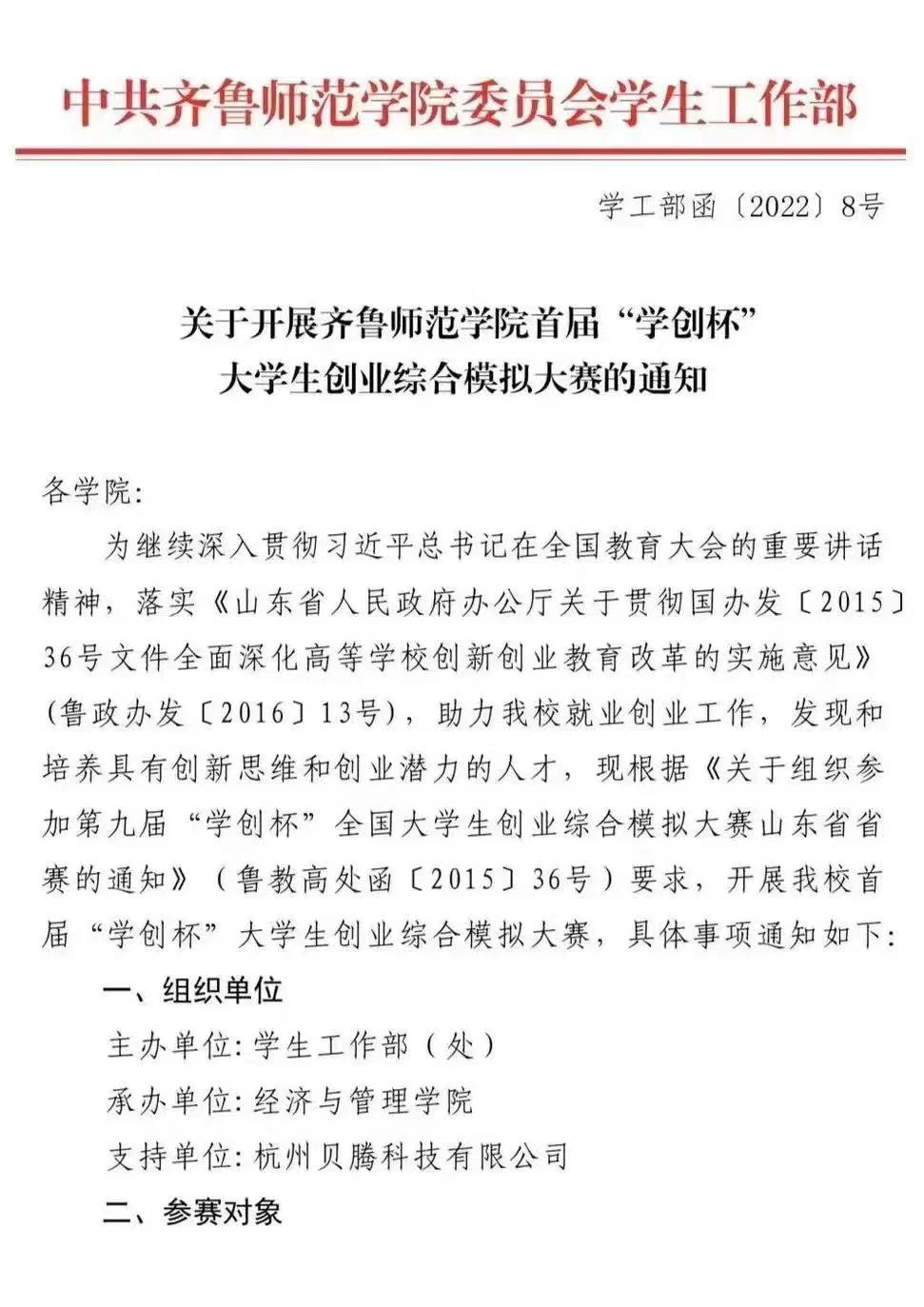 “学创杯”大学生创业综合模拟大赛是学校新开展的“双创”赛事活动,作为“双创赋能计划”具体工作内容之一,在实现以赛促学、以赛促教、以赛促创目标的同时,进一步激发了师生的创新创业热情。下一步,学校将继续开展多元化的创新创业实践活动,推进学校创新创业教育水平迈上新台阶!