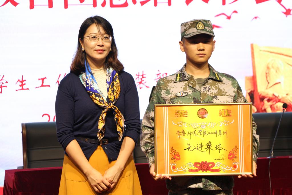 学生工作部兼武装部副部长贾龙对今年新生军训教官团工作做简要总结。学校党委高度重视大学生国防教育工作,多次召开专题会议,研究部署军训工作。为做好今年学校军训自训工作,首次在各学院退役复学在校生和军训志愿者中,遴选了30名政治素养高、组织纪律过硬、集体荣誉感强的学生,组建成立齐鲁师范学院首届学生军训教官团,并进行了为期一周的集中训练。今年军训与往年相比发生了很多新的变化。第一次以我校退役复学的学生为主组建军训教官团;大部分指导员是今年新入职的辅导员,也是第一次带军训;第一次在疫情防控复杂形势下开展军训。通过采取分时错峰开展、线上线下结合、室内室外兼顾的方式,尝试探索军事训练的新路径。在全校上下齐心协力、共同努力下,2020级新生军训工作取得了圆满成功,国防教育也取得了良好的效果。