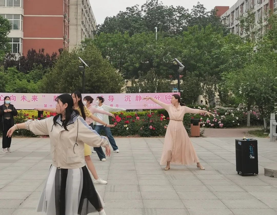 静心训练中,大家一起舞动双臂通过“四面八方”的方位练习注意力的延展和收回,通过焦点训练不断收放身心的能量,使大家更加专注于自身。舞动后的“一分钟冥想”以“松-静-慢”的节律代入大家在冥想中关注自己、悦纳自我、接受自我、发展自己。