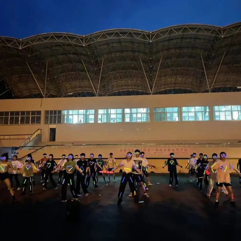 在夜跑路线中,大家穿戴着领取的荧光装备在校园自由奔跑,每个人在这一刻,流光溢彩、炫酷十足,手握荧光棒的同学们成为点亮学校夜晚的一道明亮的风景线,他们用奔跑的激情和炫彩的荧光挥洒自己的青春轨迹,他们用闪闪荧光照亮了校园的夜色。