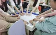 在老师的带领下团体成员一起体验实体沙盘游戏,成员们在认识、触摸、感受沙子的同时,相继回忆上一周发生的让自己感到“积极情绪”和“情绪困扰”事件,随后挑选符合当时心境的沙具,和小组成员互相分享。通过小组内的讨论和小组间的交流后,得出促进消极情绪转化的方法。最后通过整合沙盘的方式解构情绪事件,重构情绪故事。活动中大家通过沙盘敞开心扉表达情绪,释放了自身情绪压力,同时在差异中感知自我与彼此,在情感上实现了交流与互动。