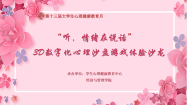 5月18日晚,由学生工作部(处)学生心理健康教育中心主办,经济与管理学院承办的“听,情绪在说话”--“情绪表达”3D数字化心理沙盘游戏体验沙龙在齐鲁师范学院团体活动中心顺利举行。活动由专职心理辅导员张丽娜带领,旨在通过线上线下相结合的体验式心理沙盘团体活动,进一步提升学生的心理健康素质,合理表达情绪,纾解情绪困扰,为大学生赋能解压。