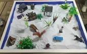 线下活动正式开始后,心理老师带领大家通过“松树与大树”破冰游戏,使大家快速活跃熟悉起来,打破彼此之间的陌生感和拘束感。同时,介绍了关于沙盘游戏的历史、沙盘游戏的适应特征和沙具的象征意义。随后同学们向大家分享了自己线上体验完成的数字沙盘作品,结合沙盘制作过程中沙具移动次数和沙具布局,依次解读了自己的沙具含义以及在沙盘制作过程中的真实情绪感受。