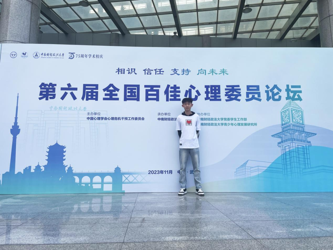 日前,在中南财经政法大学召开的由中国心理学会心理危机干预工作委员会、全国高校心理委员研究协作组主办的第十八届全国各高校心理委员工作研讨会暨朋辈辅导论坛上,我校2021级物理与电子学院学生陈爱睿荣获“全国百佳心理委员”称号。