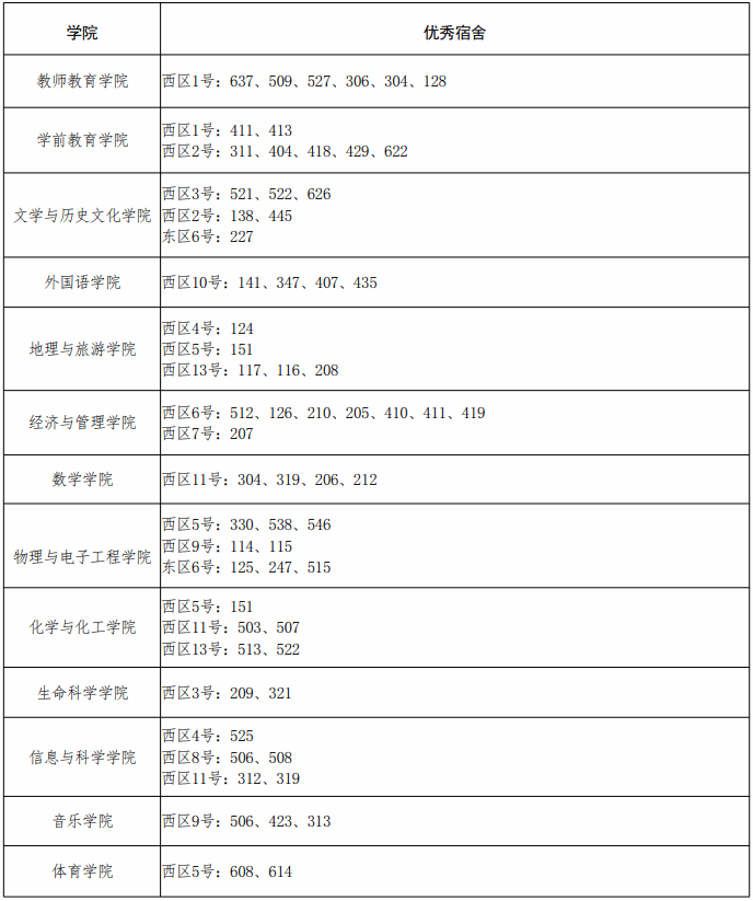 章丘校区各学院优秀宿舍公告表