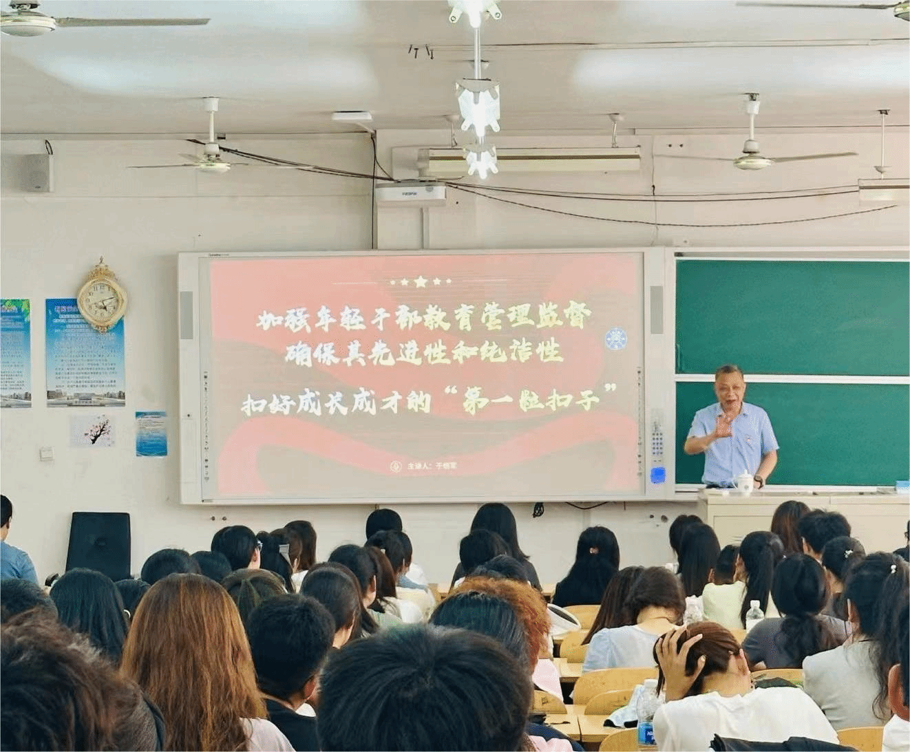 报告中,于绍军围绕干部腐败趋势、年轻干部腐败的主要特点、年轻干部腐败的主要原因、坚持标本兼治综合治理四个方面,结合生动详实的案例阐释了强化纪律意识和廉洁意识、严守纪律底线的重要意义。通过对党纪知识的讲解和年轻干部的违纪违法案例的剖析,他提出,希望青年学生在走向职场后,要坚定理想信念,敬畏党纪国法,严守“底线”,不碰“红线”,主动抵制金钱享乐等不良风气的诱惑,增强遵规守纪的思想自觉和行动自觉;辅导员和青年教师要在日常工作中,始终坚持以身作则、率先垂范,不断提升政治素养和拒腐防变能力,守住纪律“底线”、不越“红线”,保持廉洁守纪定力。报告深入浅出,既有理论高度,又有清晰的历史经纬,并不时穿插鲜活的警示案例,明确了红线、界线,在场师生深受教育和启发。
