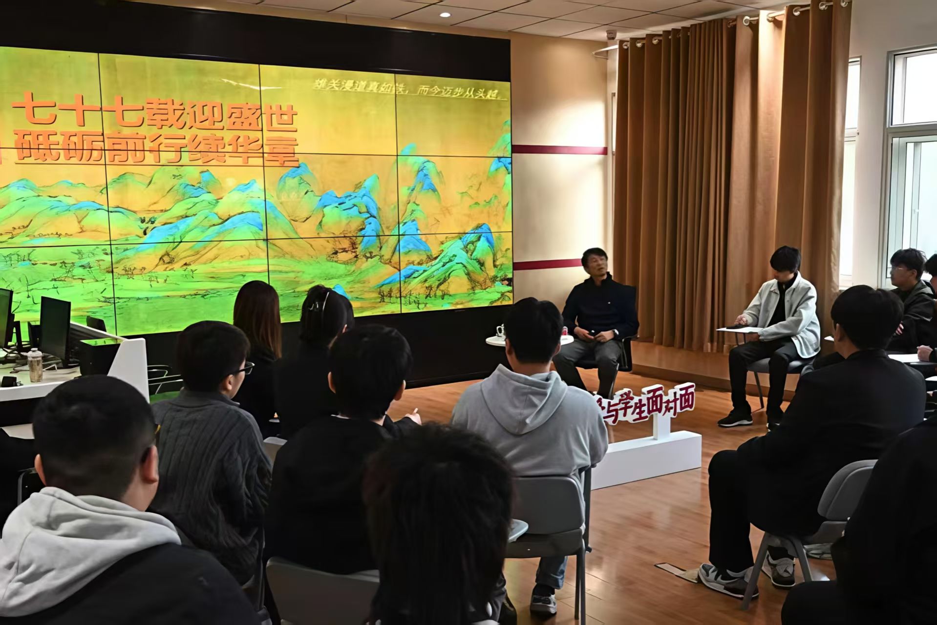 教授与学生面对面”活动。学校党委委员、统战部部长宋新刚作为主讲嘉宾,围绕“七十七载迎盛世 砥砺前行续华章”主题,与物理与电子工程学院、美术学院师生代表共同回顾学校77载奋斗历程,解读办学初心与精神传承。活动由学生工作部(处)副部长刘若杨主持。