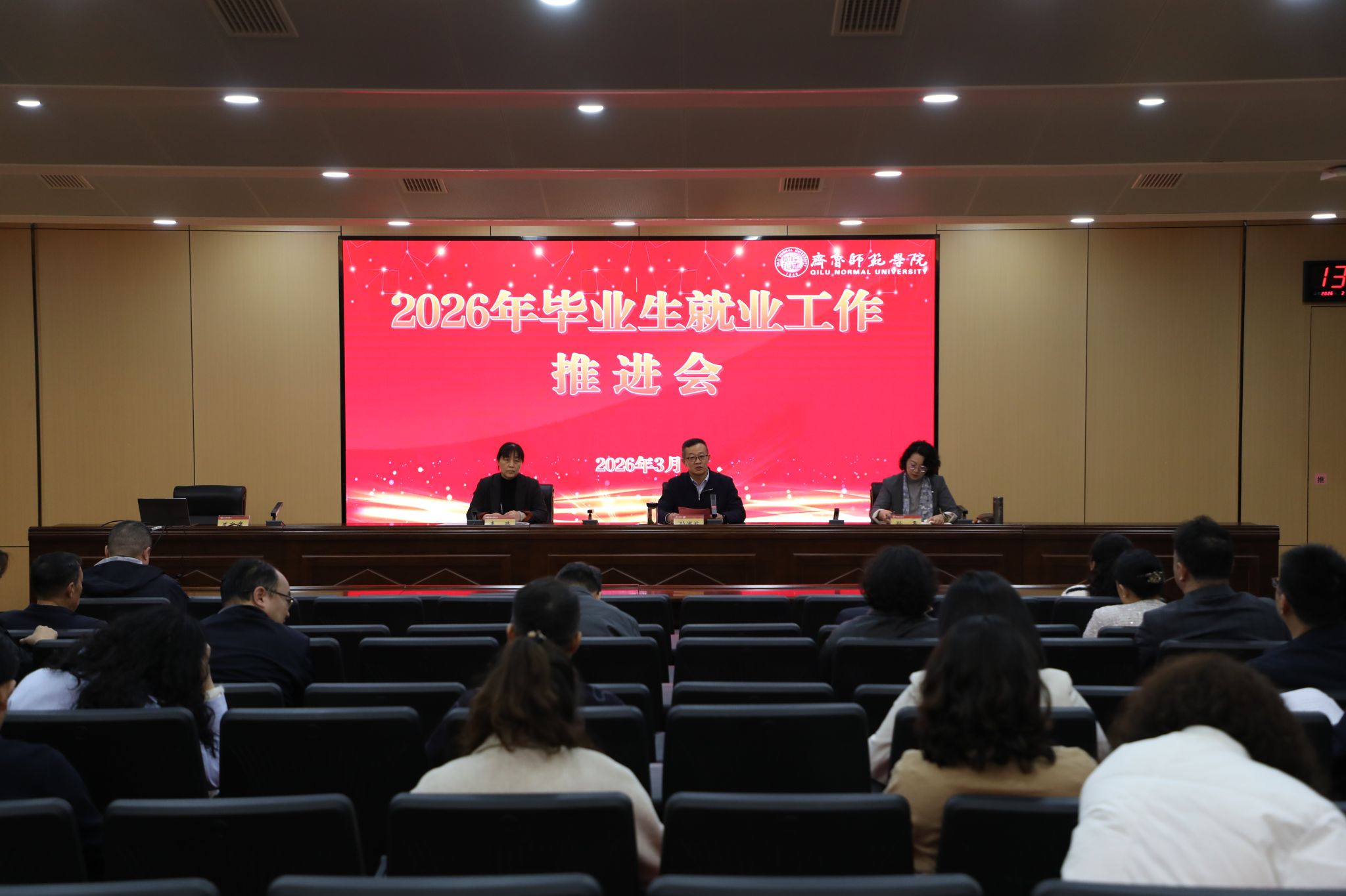 为深入学习贯彻习近平总书记关于高质量充分就业的重要讲话精神,全面落实学校党委关于毕业生就业工作部署要求,全力推进2026届毕业生就业攻坚,3月31日下午,学校在章丘校区第二学术报告厅召开2026年毕业生就业工作推进会。党委委员、副校长孙洪兆主持会议并讲话,党委委员、宣传部部长孙磊,学生工作处(就业指导处)处长李玮,各二级学院党政负责人出席会议。